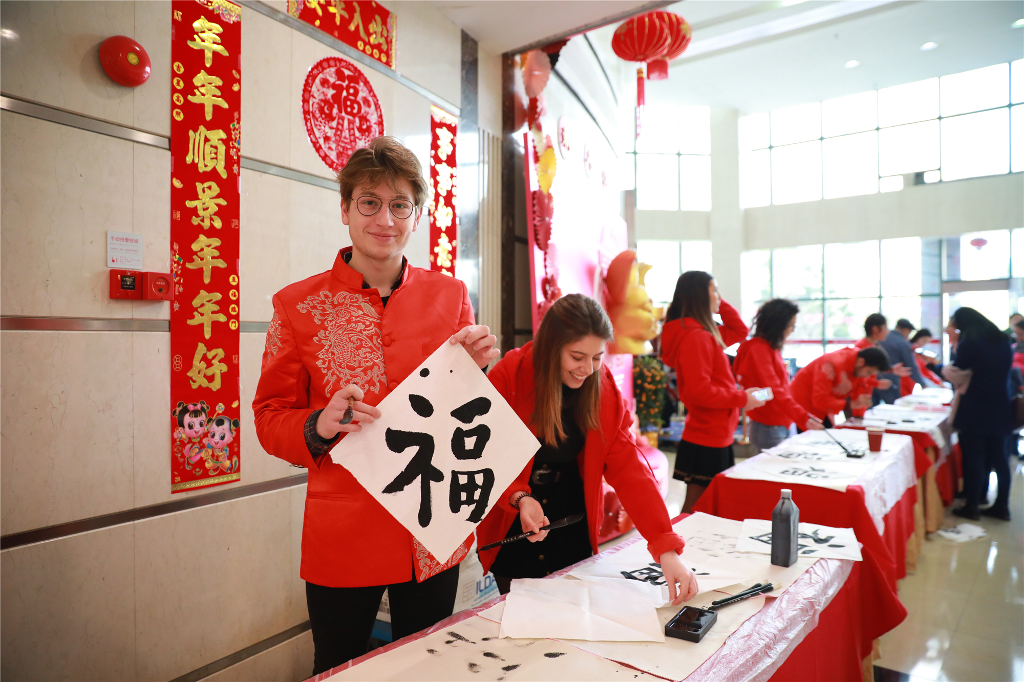 “新的一年,我希望学习进步,学业有成。”在亲手写完人生中第一副春联后,来自乌兹别克斯坦的2016级本科生倪澜用流利的中文说出了自己的新年愿望。