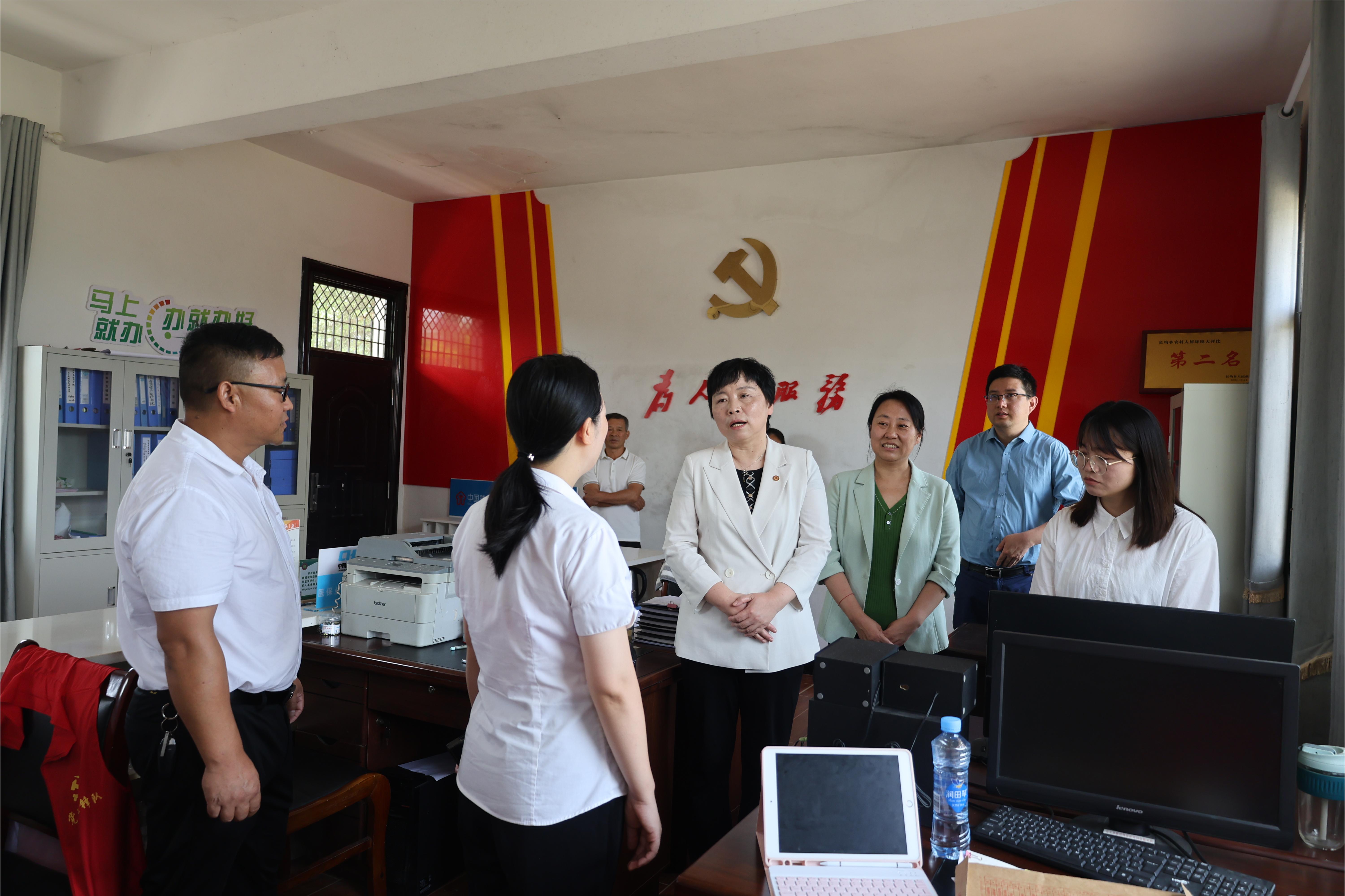 会后,调研组一行赴南昌市安义县长均乡天坪村,看望驻村干部、选调生校友蹇新妹,实地了解其工作、生活的环境。杨昌利勉励她,母校永远是她坚强的后盾,希望她把个人理想融入党和国家的事业中,多为人民办实事,为党和国家、为地方发展作贡献。