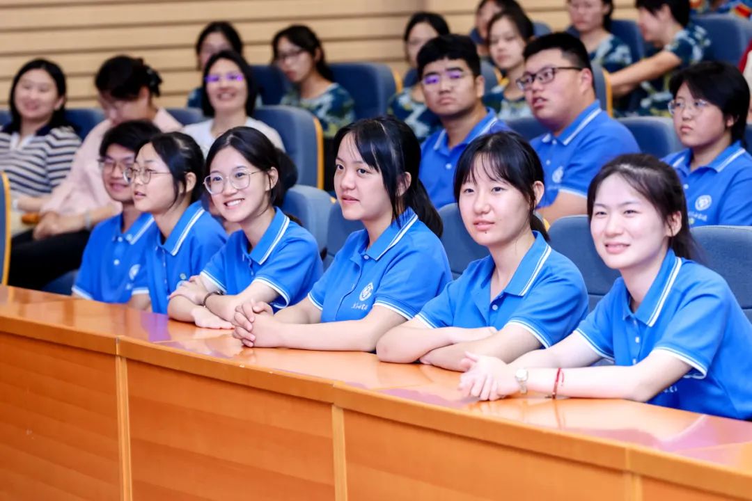 围绕学校卓越育人、卓越学术和通识课程三大纲要,梅兵书记详细介绍了学校育人思路举措,包括教师队伍、课程专业、拔尖人才培养、双创教育、国际交流、AI赋能育人创新、教师教育、养成教育和支撑保障,向新生们描绘了即将在华东师大开启的卓越成长之路。