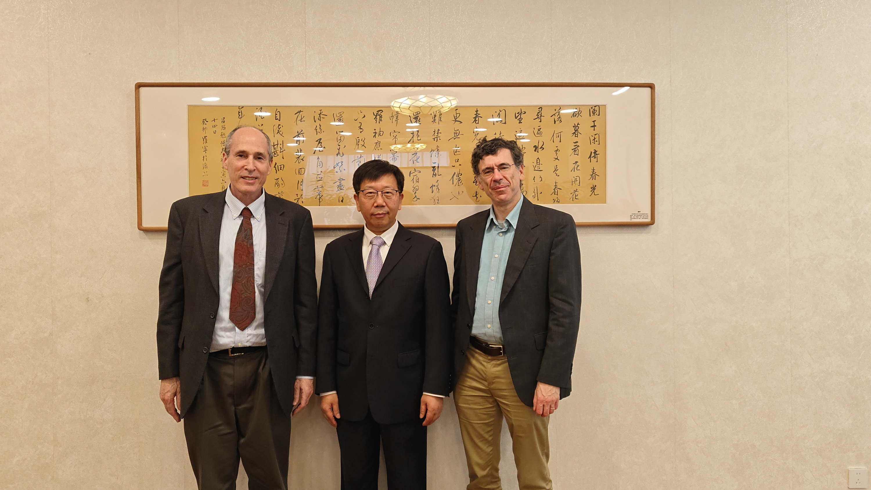 中国工程院院士、华东师大校长钱旭红会见杰瑞米·内森斯(左)和乔恩·克莱因伯格 (右)