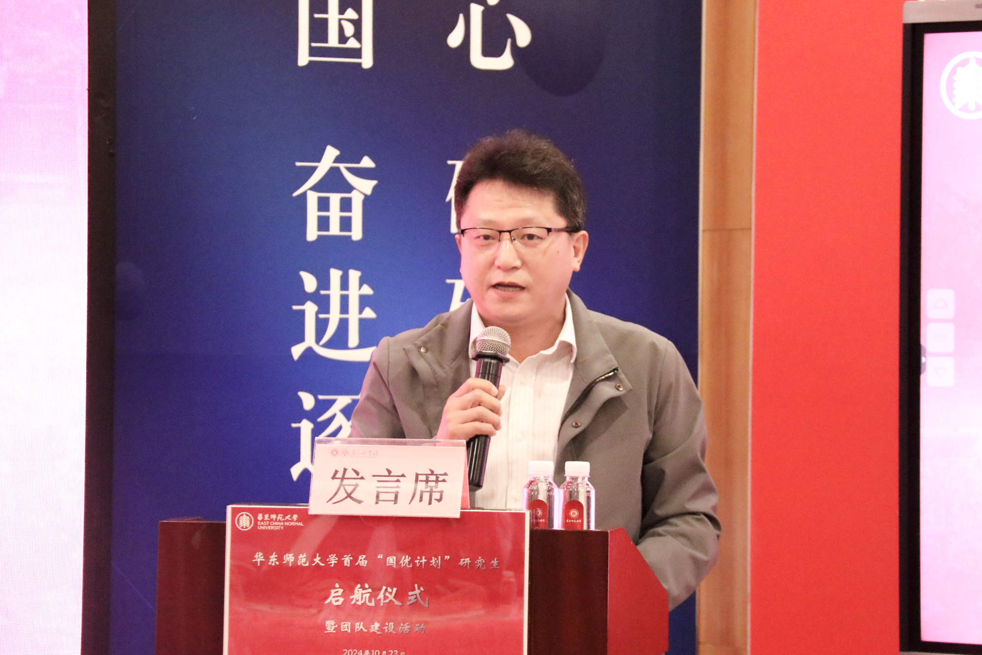 吴健为首届“国优计划”学生代表授旗,标志着华东师大首届“国优计划”启航,希望同学们以教育强国的号角为引领,乘风而行、乘势而上,步步为营、久久为功,共同担当“建教育强国”和“以教育强国”的荣耀使命。