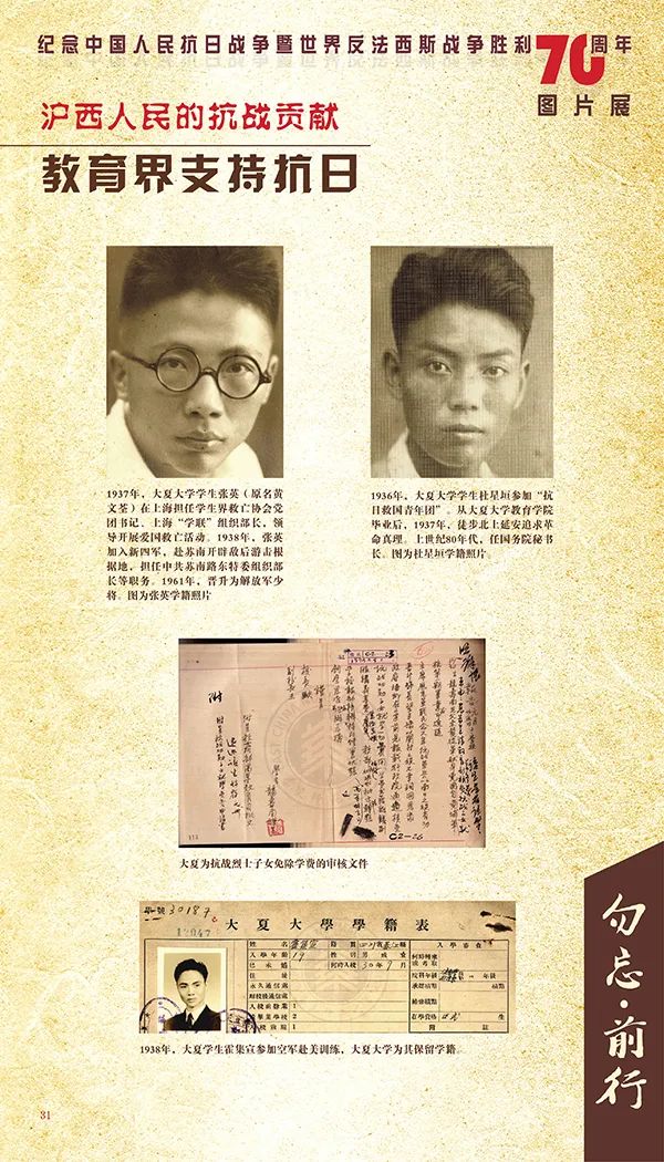 2015年,为纪念伟大的中国人民抗日战争暨世界反法西斯战争胜利70周年,普陀区档案馆主办、华东师大档案馆协办的大型巡回展览“勿忘·前行——纪念中国人民抗日战争胜利70周年暨沪西抗战史料展”在普陀图书馆展出,以抗战图片、实物、原始影响等详实的历史资料、档案,全面梳理了沪西地区人民英勇的抗战事迹,引起了极大的反响。