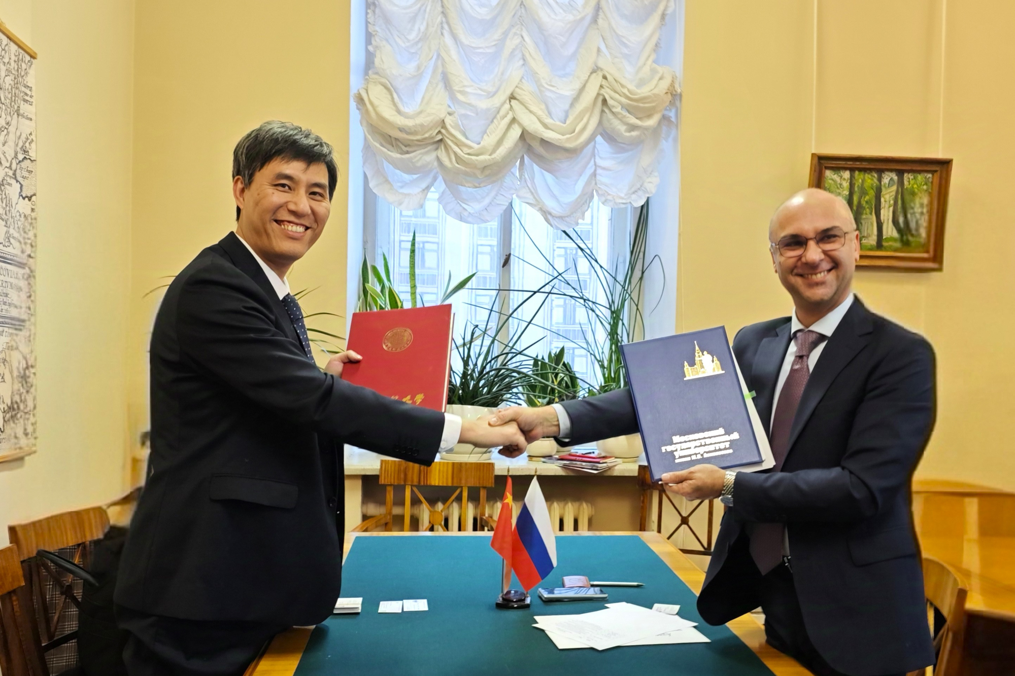 11月8日下午,代表团访问了莫斯科国立罗蒙诺索夫大学,副校长马泽毅-尤里会见了代表团。在会谈中,双方回顾了多年来在学生交换、联合培养、合作科研等方面取得的成果,并就未来进一步加强双方在科研领域的合作达成共识。会谈后,两校续签了学生交换协议。