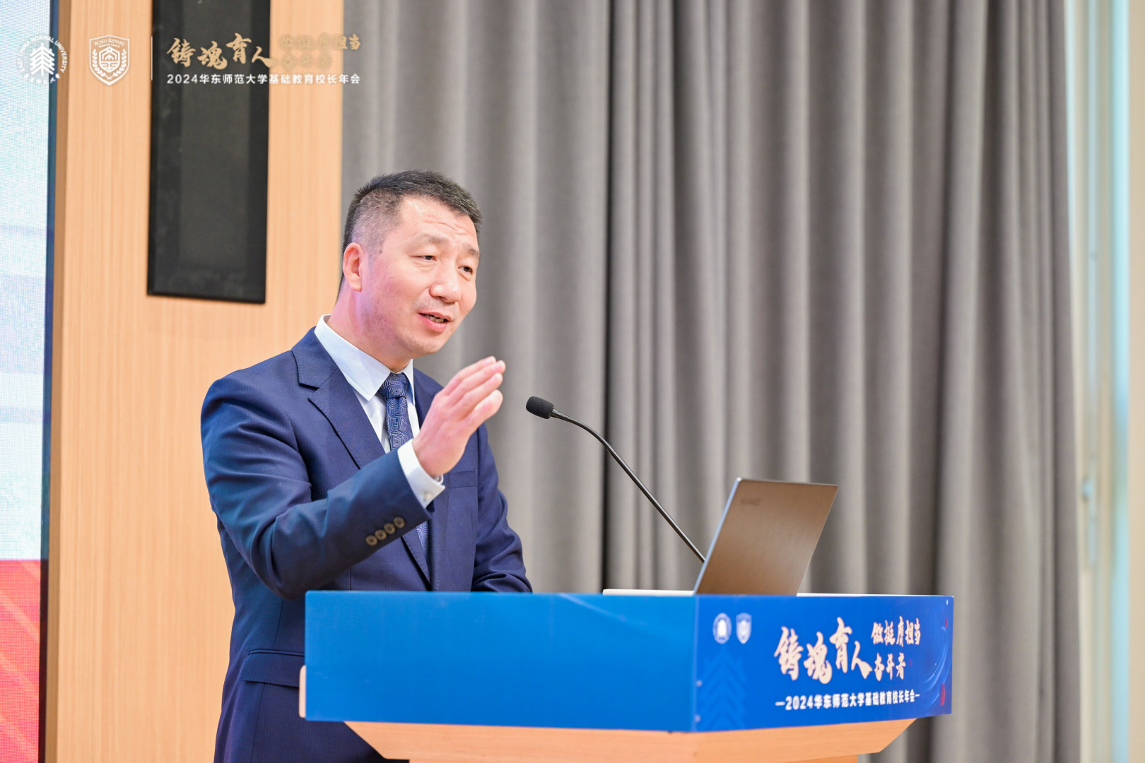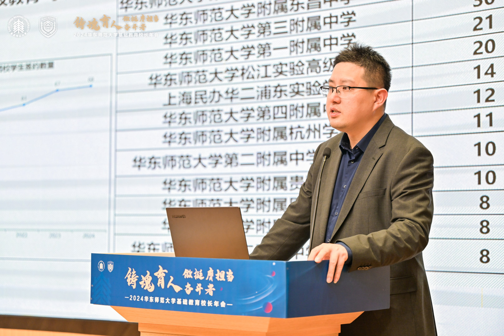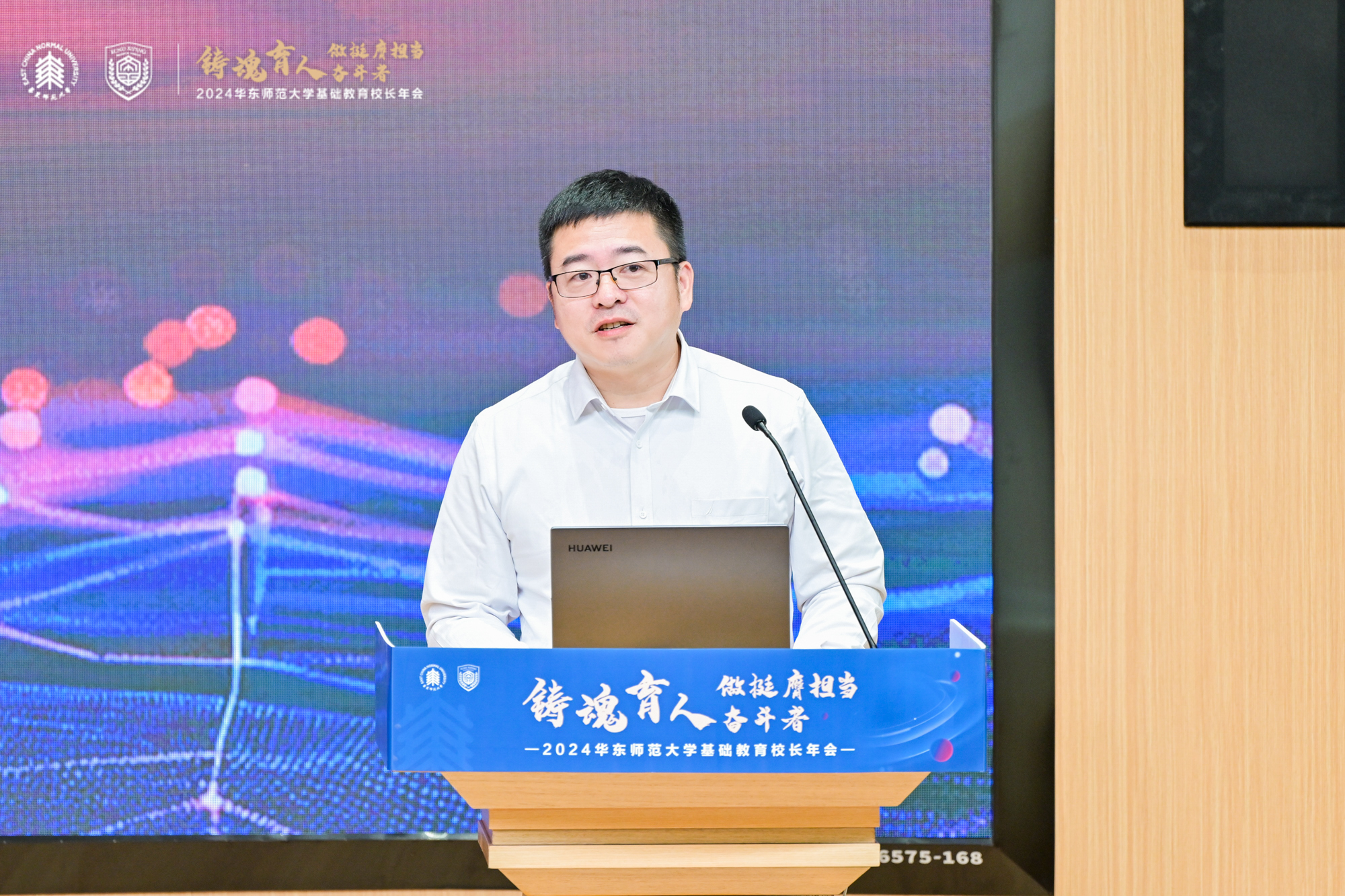华东师大基础教育与终身教育发展部部长李志聪对会议进行全面总结。他回顾了2024年教育集团在加强科学教育、试点音乐跨学科主题教育、国际交流、凝聚教研成果、捐赠图书等方面的创新工作。他高度肯定了2024年各集团校的办学成果,并强调华东师大在基础教育领域的办学,要关注每一个人的生命成长,要示范引领当地教育生态的改革与发展;要求校园长要重视顶层设计、提前规划并充分利用资源,守住安全底线。