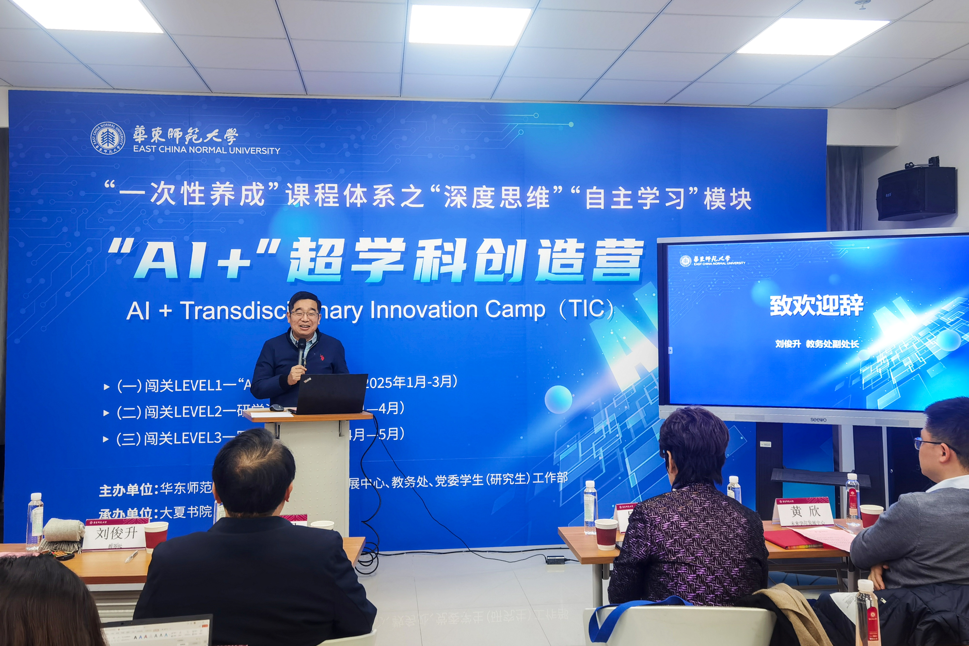 何为超学科思维?如何在超学科背景下培养创造性?1月3日,华东师大“AI+”超学科创造营正式开营,旨在通过一系列精心设计的微课程与活动,在AI+时代提升学生科研能力、激发创新活力,培养超学科思维和创造性,帮助每个学生“自由而全面的发展”。校图书馆馆长、未来学习发展中心主任吴瑞君,大夏书院院长、心理与认知科学学院庞维国教授,教务处、党委学生(研究生)工作部、未来学习发展中心相关负责人,以及百余名师生线上线下汇聚一堂,共赴这场洋溢着创新活力、智慧赋能的学术盛宴,携手探寻人工智能在科研创新与学术写作中的新路径。活动由大夏书院副院长王郦玉主持。