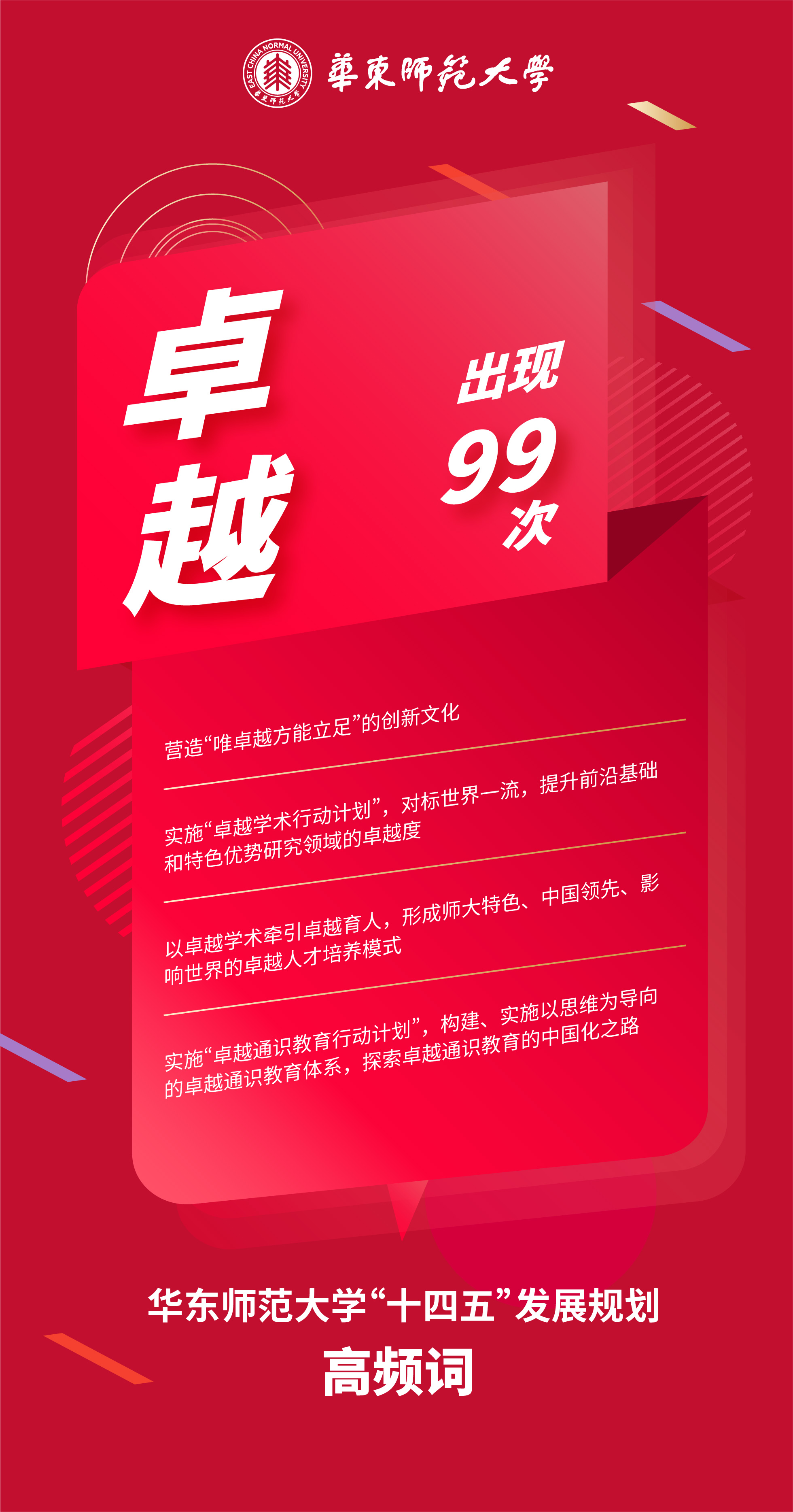 实现更高质量的卓越(Excellence)发展、创新(Creativity)发展、引领(Navigation)发展、特色(Uniqueness)发展,形成独特鲜明的E.C.N.U.办学特色