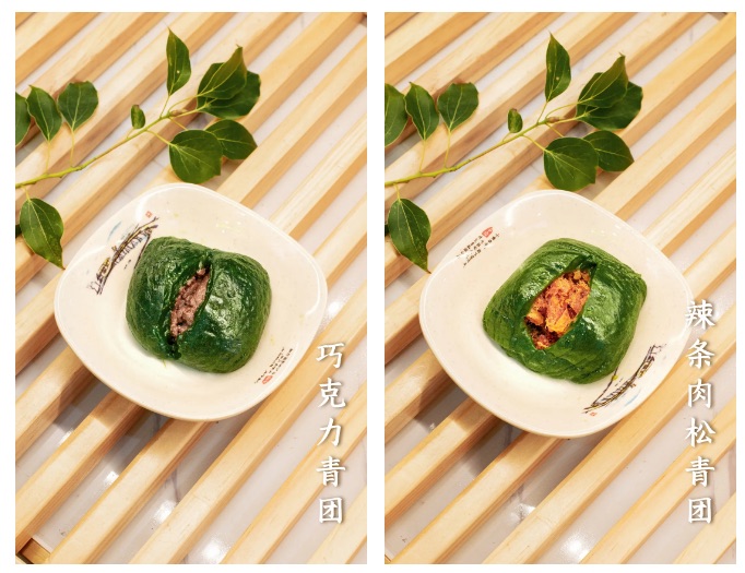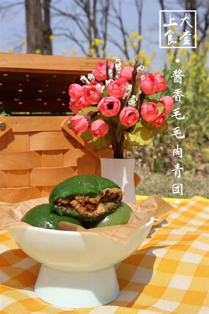 酱香毛毛肉青团:肉香、酱香和鲜味渗入青团,浓郁而独特的风味充满味蕾。鲜嫩可口、酱香四溢,咸香软糯不失清新滋味。