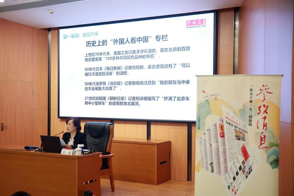 报社代表介绍了《参考消息》报发展历程和现状,《参考消息》由新华通讯社主办,创刊于1931年,是读者了解国际社会,获取前瞻性、趋势性、镜鉴性信息的重要窗口。随着中国日益走近世界舞台中央,新时代的中国故事成为全球媒体关注和报道的重点。作为“中国人看世界”的重要窗口和了解“世界怎样看中国”的特殊渠道,《参考消息》在2022年1月推出了“中国故事世界说”栏目,借助经验丰富的选编译力量、现代化的舆情大数据监测分析系统以及遍布全球的采编网络,为读者搜集、整理、呈现来自世界各个角落的中国故事。