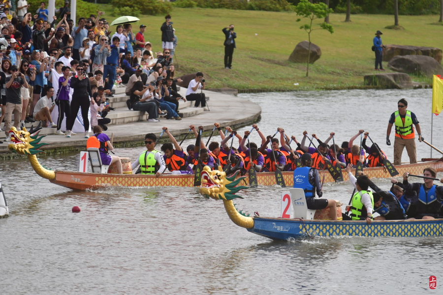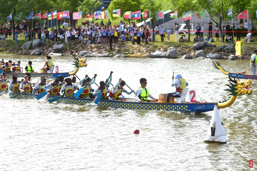 浓浓中国风,满满国际范,第十四届上海高校外国留学生龙舟赛暨第二届长三角高校外国留学生龙舟邀请赛,当天在华东理工大学奉贤校区鸣金。34支队伍、106个国家、765名参赛选手,来自复旦大学、南京理工大学、浙江大学、中国科学技术大学等苏浙沪皖高校的留学生龙舟队挥桨竞逐……不同的肤色,一样的龙舟;不同的语言,一样的鼓点。