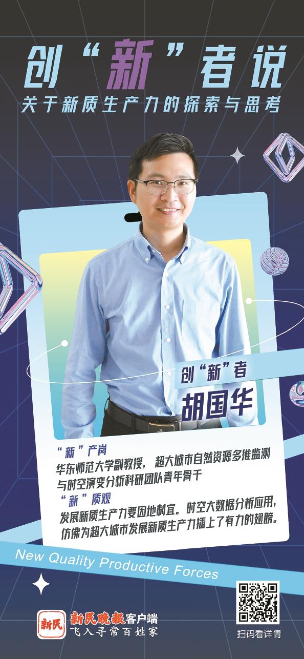 “作为中国经济总量最大的城市,上海在集聚人才、资金、技术和数据等各类新质生产力发展要素方面具有相对优势,但也面临超大城市空间资源要素紧约束的掣肘。因此,持续优化配置城市空间资源,是强化新质生产力发展支撑保障能力的必然要求。”胡国华介绍说,实验室通过融合新一代3S技术、大数据挖掘分析技术、数字孪生技术、人工智能与云计算技术,生产发布了包括人口、气候、土壤、污染、土地等一系列城市自然资源要素时空大数据精细化产品,助力于城市智慧管理。