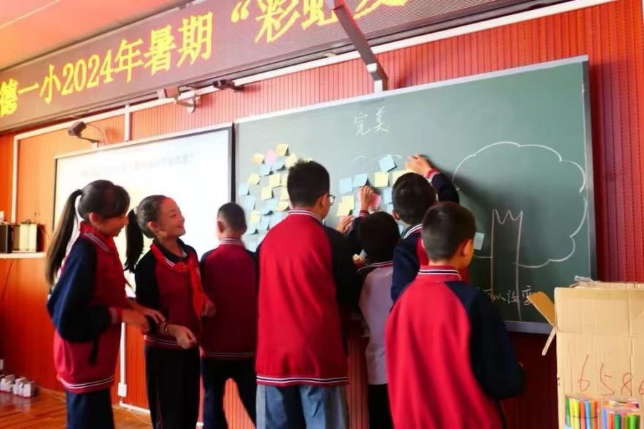 除了授课,彩虹夏令营的师生们还通过实地走访、电话等形式,深入了解乡村儿童家庭教育现状。经过家访和调研,夏令营团队发现,由于师资力量与课程作业的相对欠缺,孩子们在科学学习上尚存进步空间。为此,他们精心筹备了“童心创想”科学探究游园会,在充满趣味性与启发性的活动中激发孩子们对科学的好奇与热情。游园会共设漆扇体验坊、生活实验室、科学空间站、乐器工作坊、AI对话室5个区角。“放学后,孩子们仍扎在不同的区角完善自己的作品,迟迟不愿离去,这就是科学的魅力吧!”彩虹夏令营队长、教育学部21级本科生刘鲲感慨。