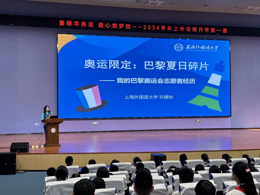学校开学第一课还请来巴黎奥运会志愿者——上海外国语大学2021级法语系本科生许婧怡。她经过层层选拔,入选巴黎奥运会志愿者,用志愿服务诠释责任与奉献,激励着每一位学弟学妹:只要有梦想、有目标,就应全力以赴,用实际行动追逐梦想,成就非凡,做自己的冠军。