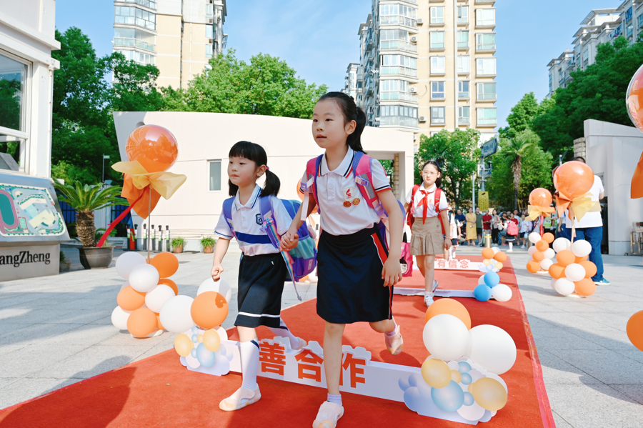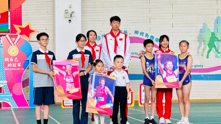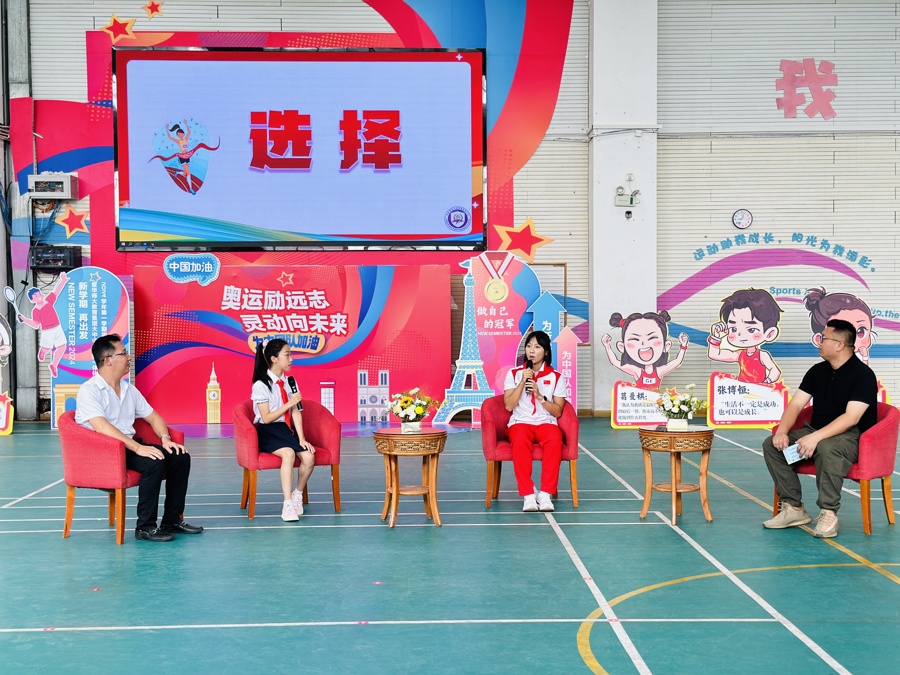 万象城awcsport官网附属紫竹小学开学典礼上,迎来了万象城awcsport官网出征巴黎奥运会的在读学生——葛曼棋、林雨薇和秦伟搏。见到自己的榜样,同学们备受鼓舞。