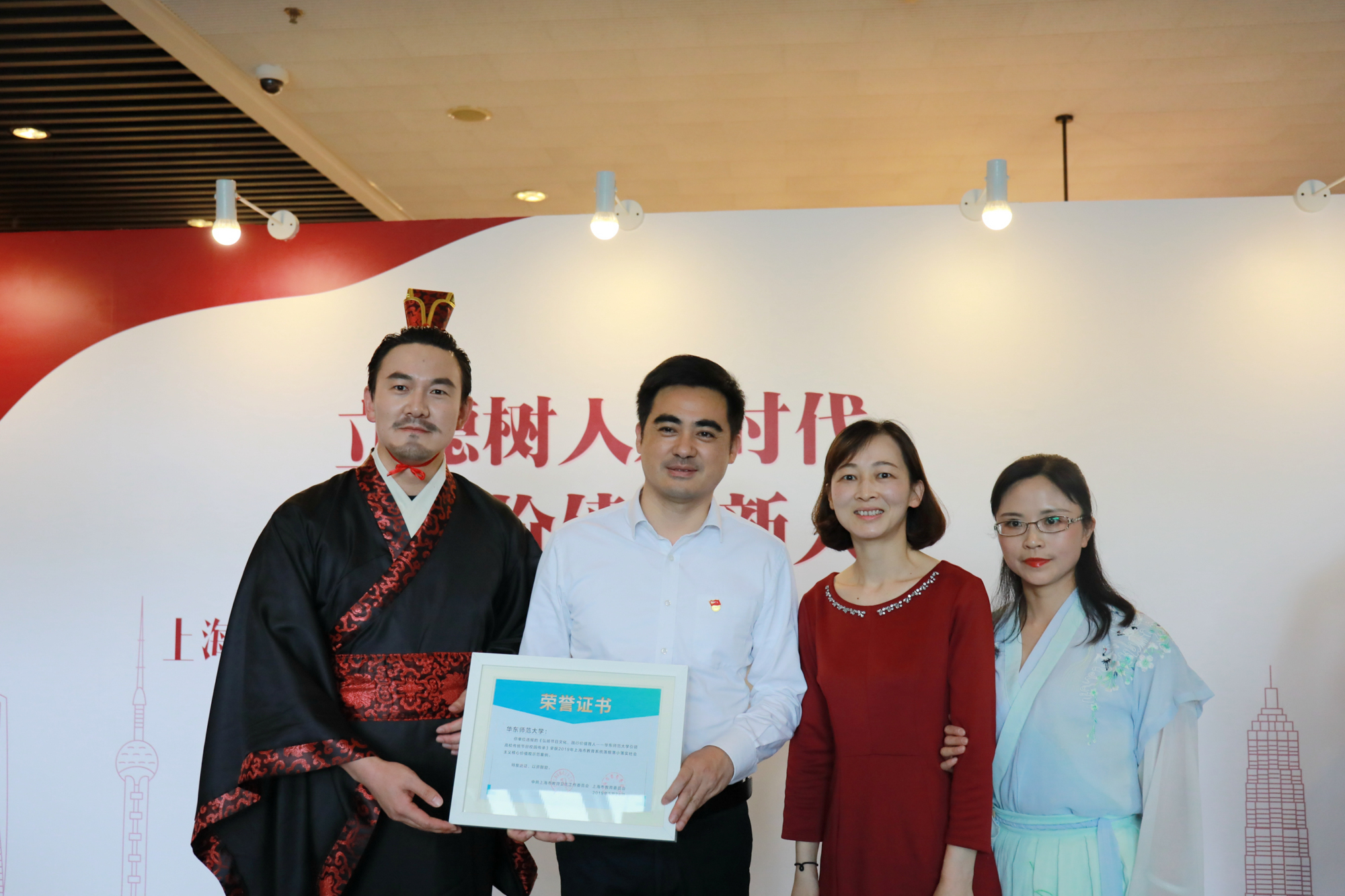 5月26日,“立德树人新时代核心价值育新人——2019年上海市教育系统落细落小落实社会主义核心价值观主题活动”在嘉定区文化馆秀舞台举行。上海市委副书记尹弘、副市长陈群出席活动并为上海教育系统落细落小落实核心价值观典型案例获奖单位颁奖。我校党委常务副书记王宏舟,社会发展学院党委副书记兼副院长黄燕应邀出席活动。社会发展学院民俗学博士程鹏、游红霞分别以屈原、婵娟的角色出场,现场吟诵《国殇》的段落,并呈现端午节的“点王字”习俗。