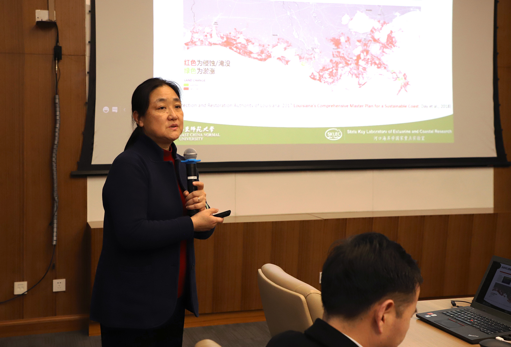 华东师大副校长孙真荣指出,在上海市推进更深层次改革、更高水平开放创造新时代的背景下,华东师大在推进双一流建设进程中,正致力于为全社会提供新的解决方案。华东师大河口海岸研究团队,从上世纪开始就开展了长江口淡水资源、航运资源、滩涂资源和生态环境资源等领域的研究且成效显著。希望在长江口生命共同体的建设中,能为提高上海河口城市治理现代化水平,持续改善长江河口区域生态环境质量,加快建设生态宜居城市,全面提升超大城市治理现代化水平继续贡献师大的智慧和力量。