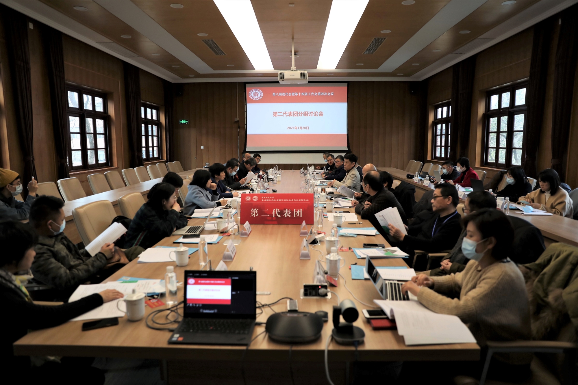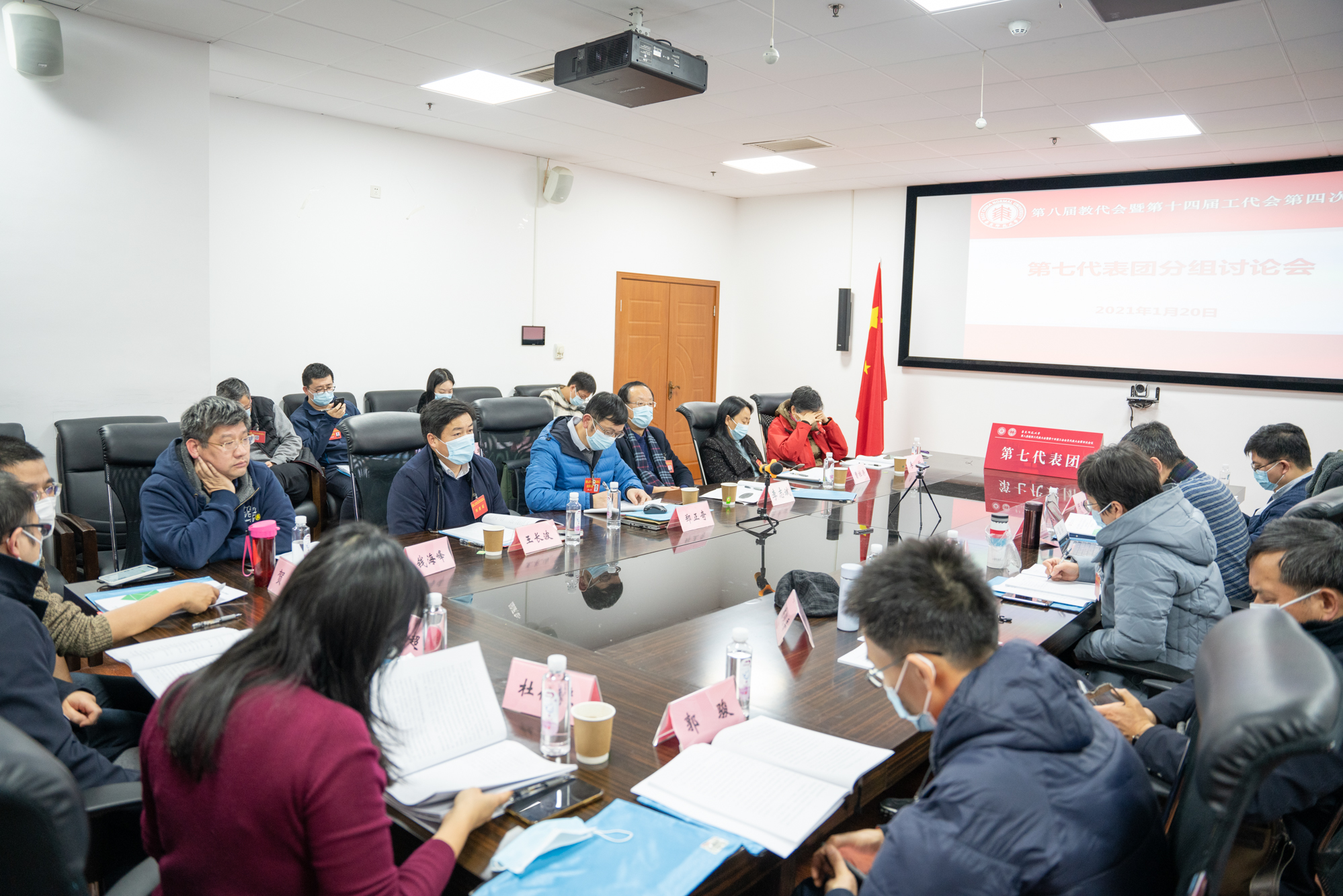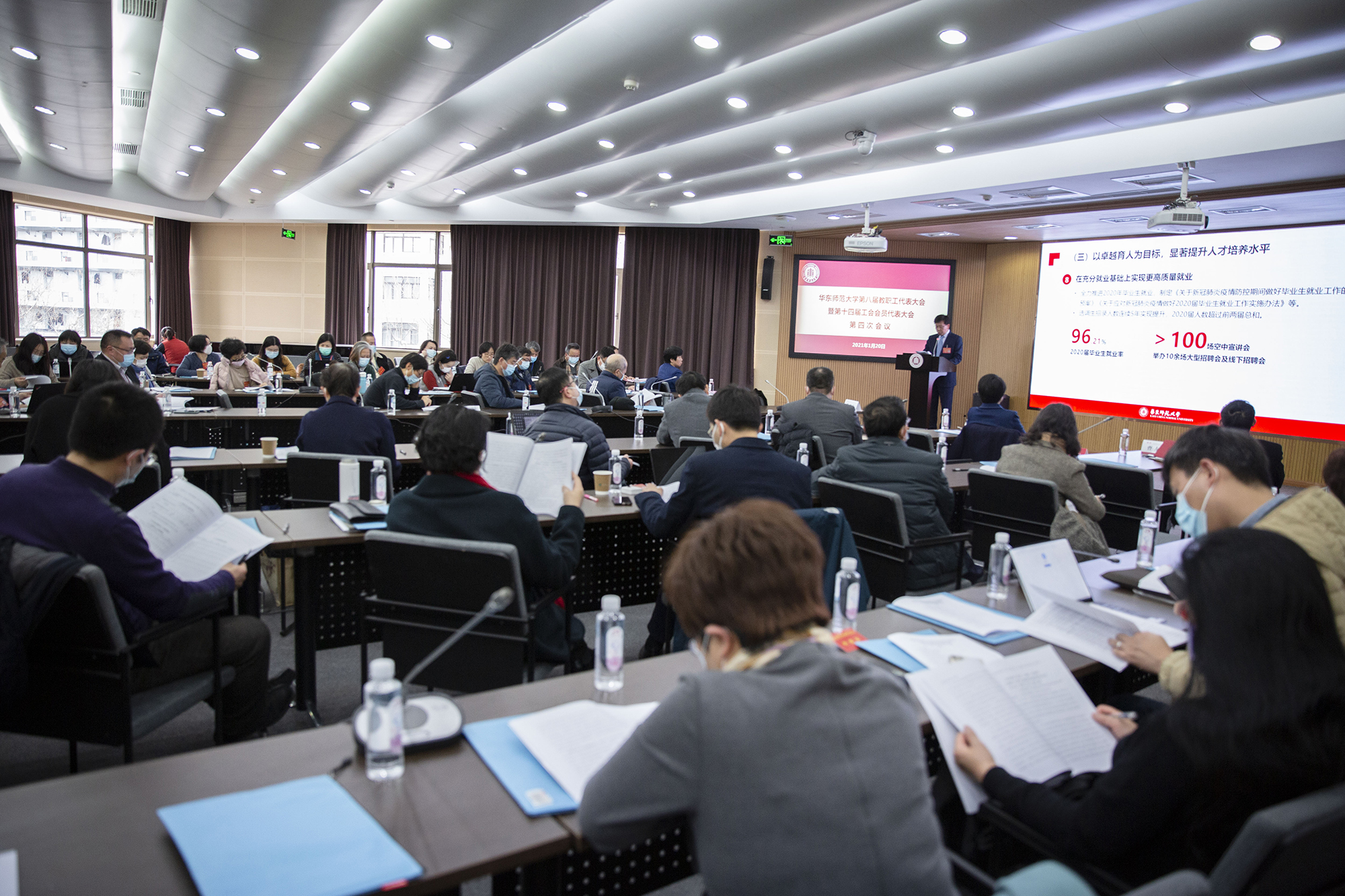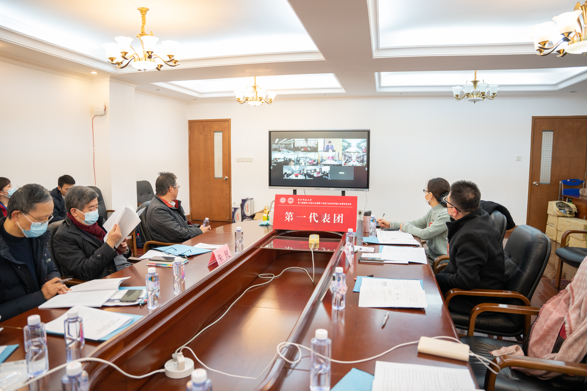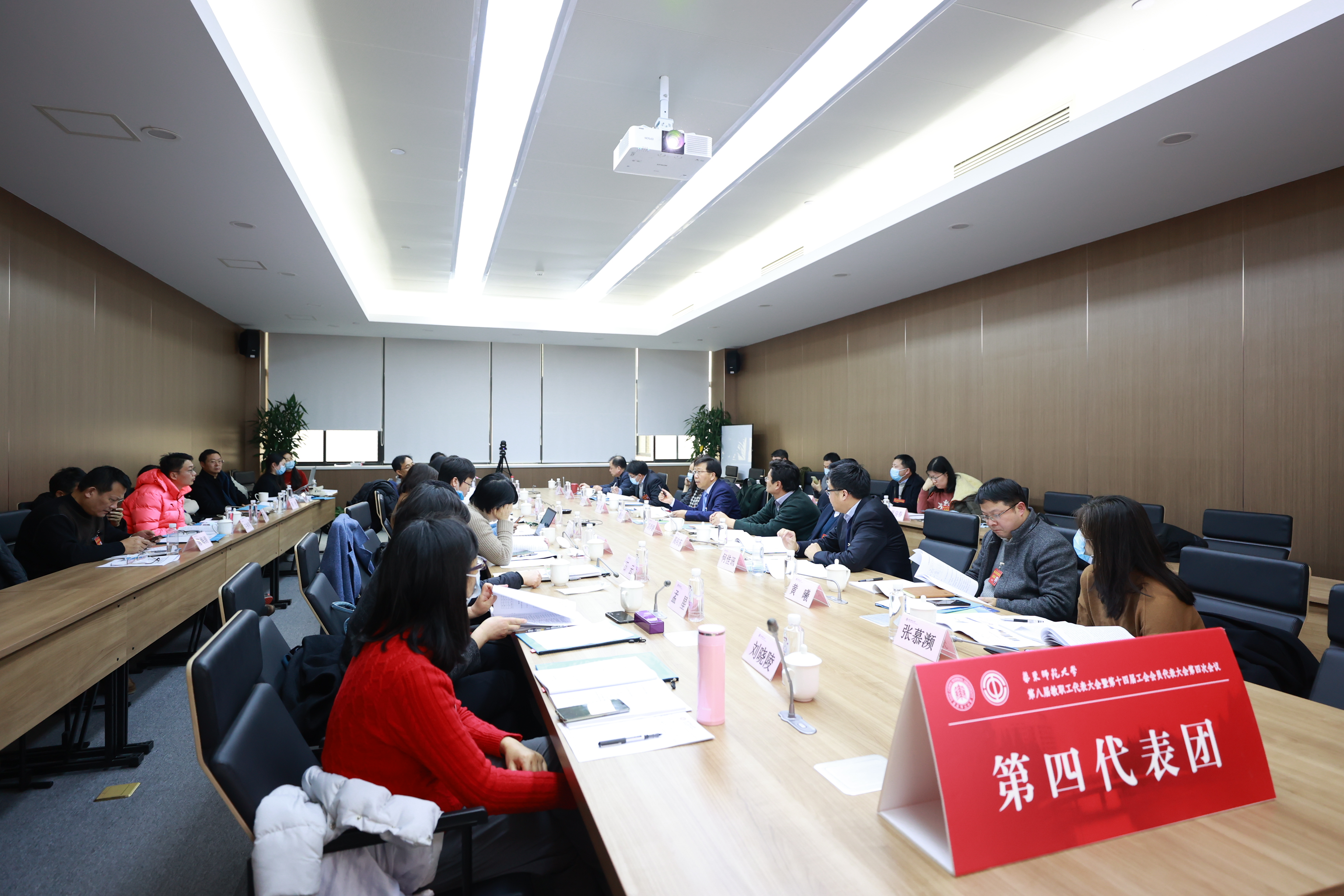 1月20日下午,在庄严的国歌声中,万象城awcsport官网第八届教职工代表大会暨第十四届工会会员代表大会第四次会议(以下简称“双代会”)召开。根据疫情常态化防控要求,本次大会通过线上线下相结合的方式设10个分会场在两个校区进行。