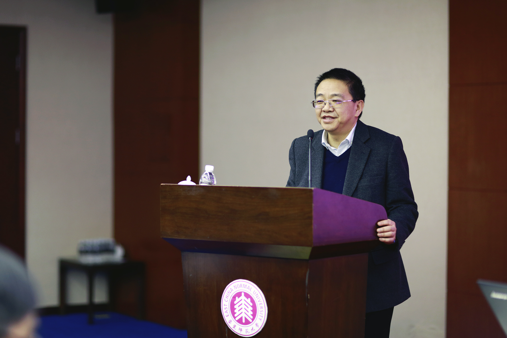 在专题报告环节,副校长戴立益首先介绍了本次会议专题讨论的背景,并从专业教育、通识教育和教师教育三个方面深刻分析了我校的发展形势。在专业教育方面,戴立益以专业设置、培养方案、教师、学生、实践与双创、标志性成果、科学管理、教育研究等专业教育中存在的问题为切入点,结合相关工作要求和兄弟高校经验,深入分析了我校专业教育工作的现状,总结了工作成效,并反思了存在的突出问题和薄弱环节。他指出,要把一流专业建设“双万计划”作为调整优化专业结构的重要突破口,推进落实教育部“六卓越一拔尖”计划2.0工作。在通识教育方面,戴立益表示通识课的定位是基于社会进步的贡献、文明传承的精华、学科发展的脉络,通过经典研读和多元体验,奠定华东师大本科生应有的价值理念、精神素养和思维习惯。他表示,目前我校在人才培养理念与通识课程建设方面已有基础,要打造通识教育课程2.0版,必须建构通识课程结构体系2.0版、由基于功能认同的高水平教师担纲主讲、符合“通识课程”要求的年均420门次要求。在教师教育方面,戴立益表示要深入推进教师教育改革必须处理好教师教育与高等教育、基础教育的关系,必须处理好教师教育与教育研究、教育服务的关系,同时注重培养学生乐教、适教、善教与持续动能,将适应性与科学性渗透到培养方案中,强化未来教师培养的“软实力”,把握信息技术与课堂教学深度融合,打造本硕博贯通、职前职后一体化的培养体系。