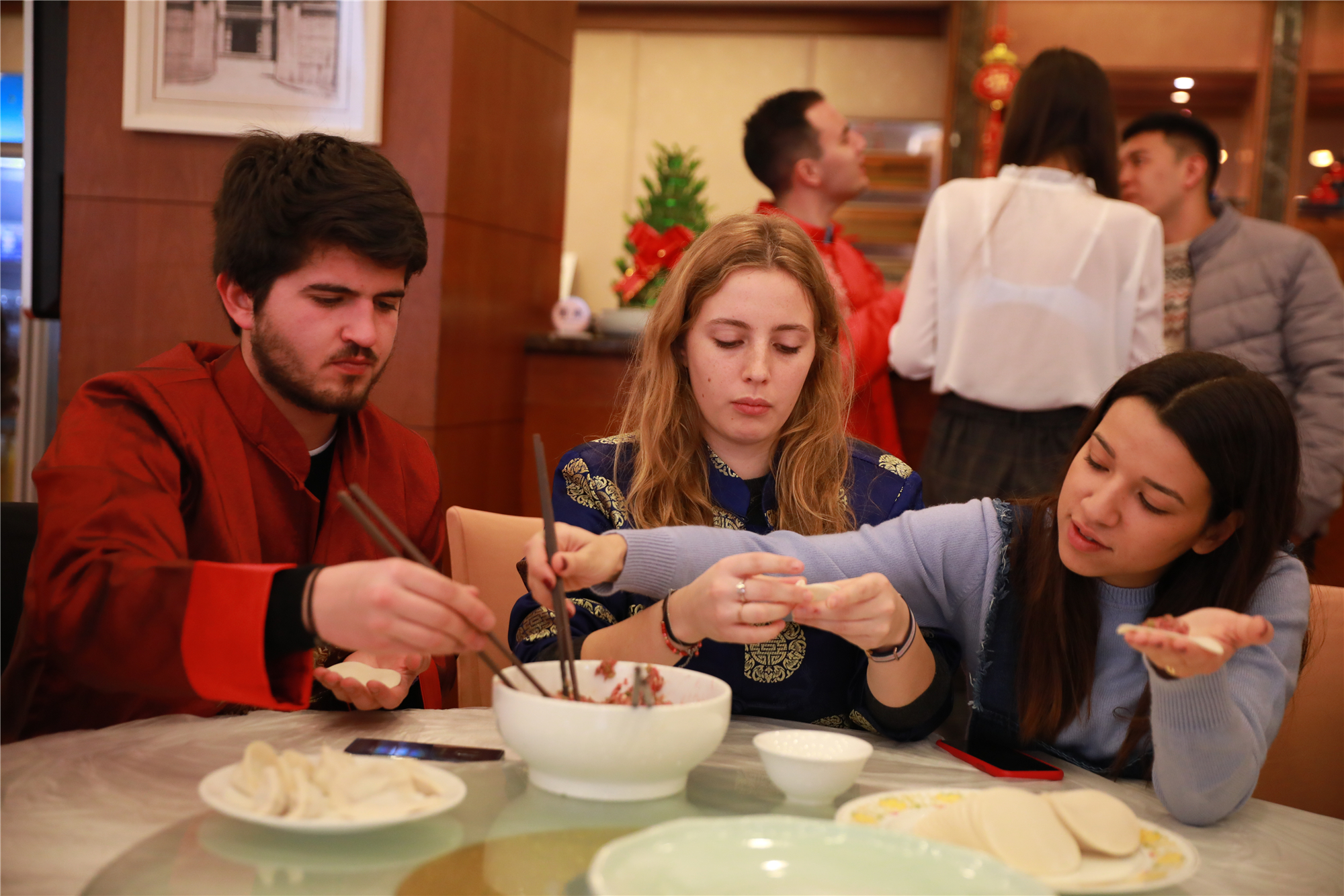 通过写春联,留学生们互道祝福;而围成一桌包饺子,更让他们在感受传统中国文化的同时,增进了彼此的友谊。通过写春联,留学生们互道祝福;而围成一桌包饺子,更让他们在感受传统中国文化的同时,增进了彼此的友谊。同学们跟着师傅,学习擀饺子皮、包饺子馅儿。当吃到自己包的热气腾腾的美味饺子时,他们对中国文化有了新的感知。