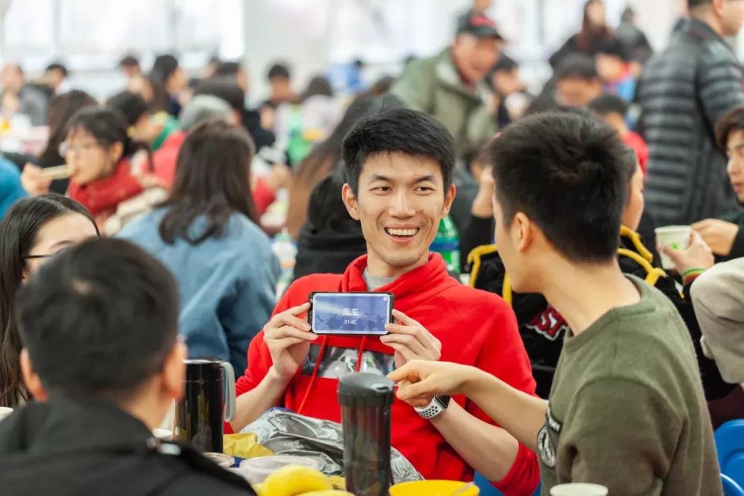 这边精彩的节目轮番上演,那边后勤员工与志愿者们已经将热气腾腾的饺子送到了大家面前。作为中华民族的传统食物,饺子有着独特的文化内涵,而师大特色“彩虹饺子”更饱含了新年五彩斑斓的美好寓意。由食堂大厨亲手剁馅擀皮包的近万只饺子,让同学们品尝到的不仅是舌尖上的美味,更是家的温暖。大家吃着饺子,畅想来年,洋溢着中国传统佳节的喜庆。