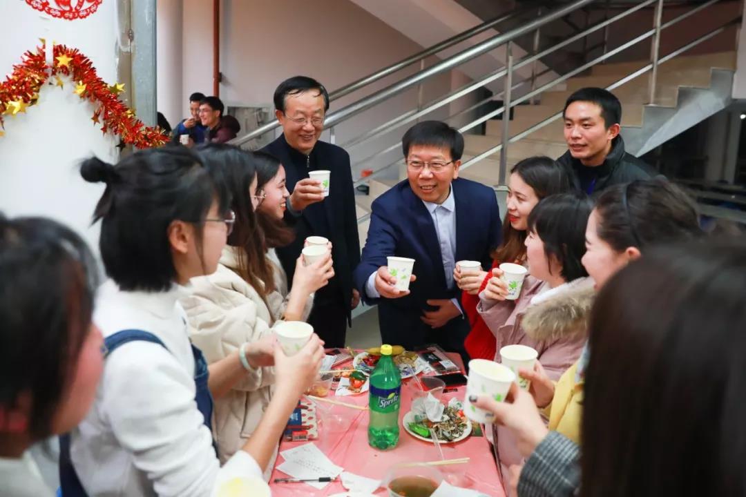 校领导童世骏、钱旭红、王宏舟、杨昌利、李志斌、周傲英等与师生员工一同迎新,其乐融融。师生举杯共祝,伴着欢快的音乐,讲述一年来的收获与感悟,展望2019奋斗年。