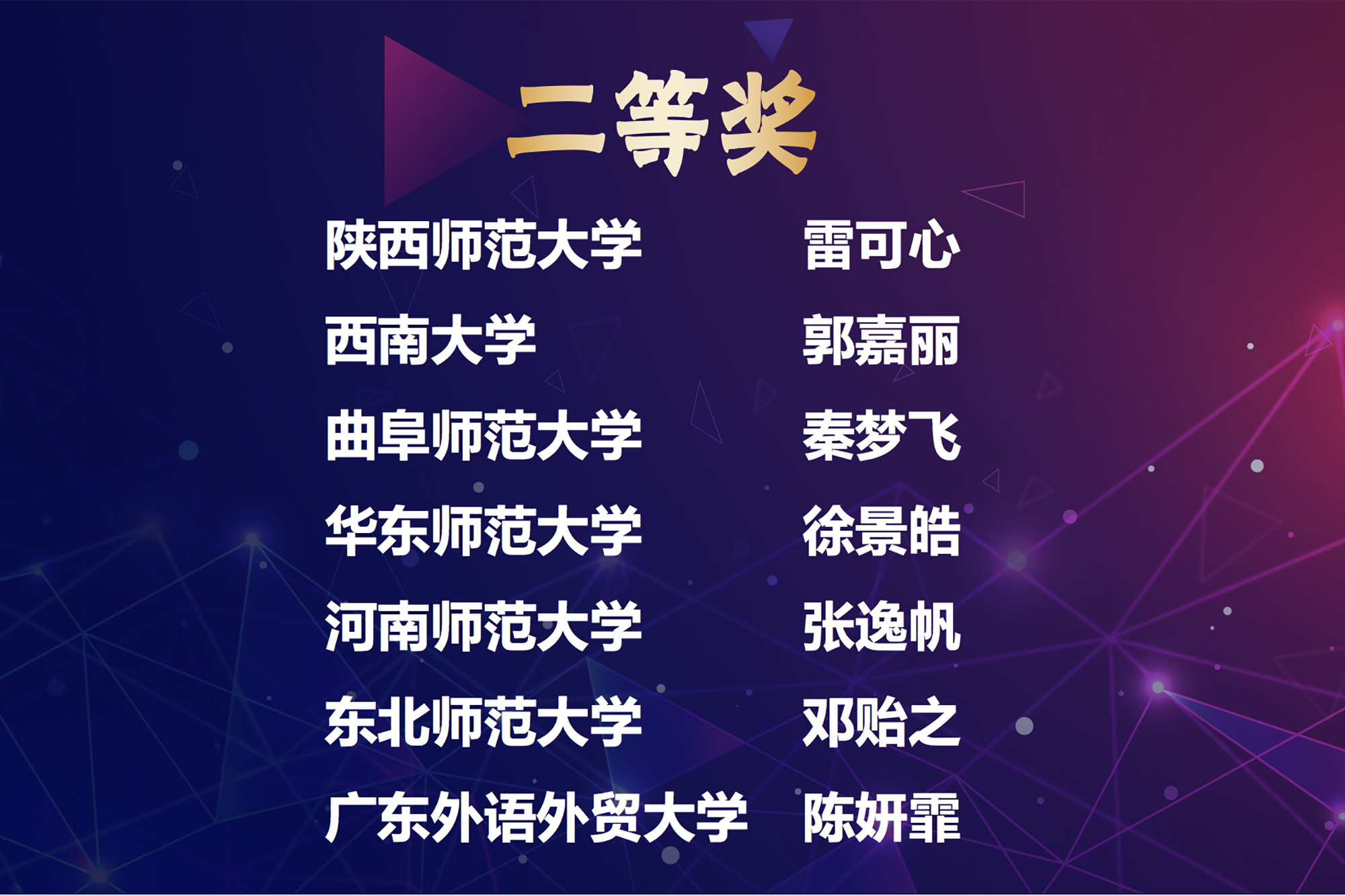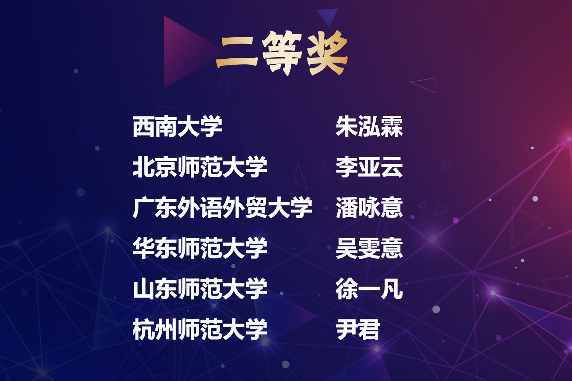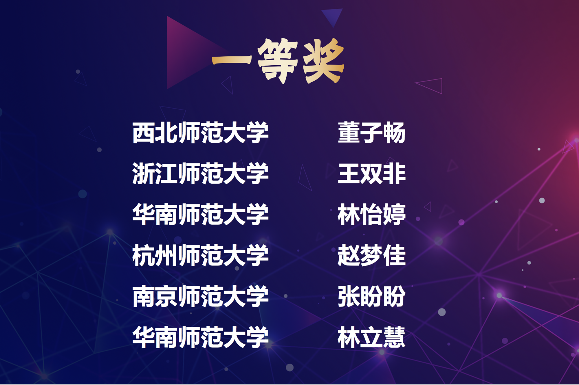 一等奖获得者、来自华南师范大学的林怡婷同学用三个词“感恩、沉淀和成长”概括了她参加此次活动以来的心路历程,她鼓舞全体师范生同学们在活动过后继续潜心钻研,成长为优秀的未来教育家。华东师大外语学院参赛选手吴雯意同学在闭幕式上表示:“源于职业追求,所以在此相聚;勤于系统训练,所以初露锋芒;敏于教学反思,所以取长补短;乐于教书育人,所以期待未来。”