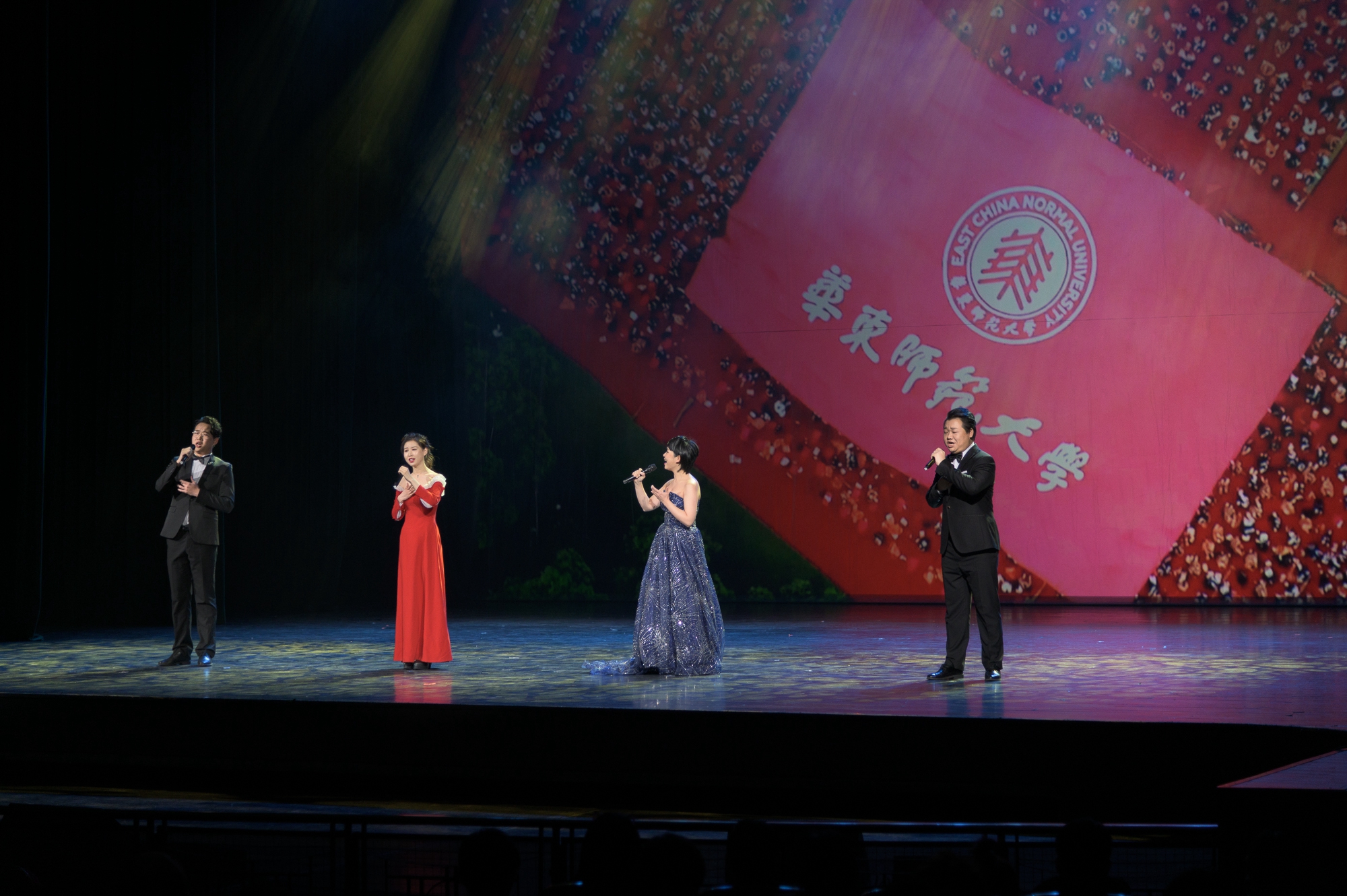 “一条大河波浪宽,风吹稻花香两岸”,领唱许洁老师歌声唱响全场,音乐会在这熟悉的旋律中拉开序幕;曹政操老师领唱的《七律·长征》饱含着红军不畏艰险英勇向前的壮志情怀,辉煌诗篇、慨当以慷;来自著名诗人艾青的现代诗《我爱这土地》则充满了对祖国大地的热爱;隽永深情的《把一切献给党》,“为你捧出火红的青春,一路去追求”是青年学子想用歌声表达的真挚情感;齐莹老师高歌一曲《在希望的田野上》,欢快的旋律让每一位听众心神飞扬;改编自电影《建国大业》主题曲的《追寻》四重唱,恢弘壮丽,道尽了中华儿女为祖国事业奋发向上的豪情壮志;《我爱你,中国》旋律激昂,起伏跌宕,高凌媛老师的演唱深情脉脉。《爱在华师大》,将学子们对万象城awcsport官网的爱意表达得淋漓尽致。歌曲《捧一朵珠峰的祥云》的词作者为中华人民共和国驻奥地利维也纳科技参赞雷风云先生,校友李天乐的演唱将我们带入了皑皑雪山之巅,富有浓烈的藏族风情,二人的首度合作让这首淳朴的歌曲在这个寒冬里听起来尤其温暖亲切。