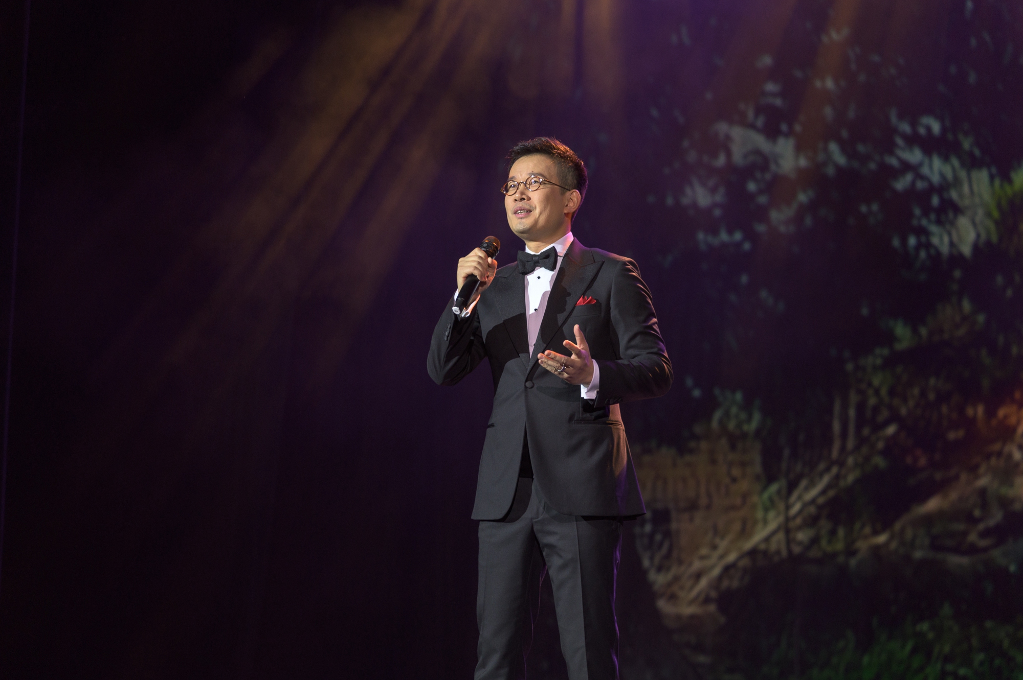 著名男高音歌唱家石倚洁先生的出场让整场音乐会的气氛达到了最高潮。这位在国际歌剧舞台上大放异彩的罗西尼男高音展现了对中国歌曲的超凡演绎,一首《鼓舞》震撼了在场的每一位观众,他的歌声如惊涛拍岸,极富穿透力,深深打动观众们的心,为在场观众们注入了一股强大的精神力量,鼓舞我们开启新的征程。