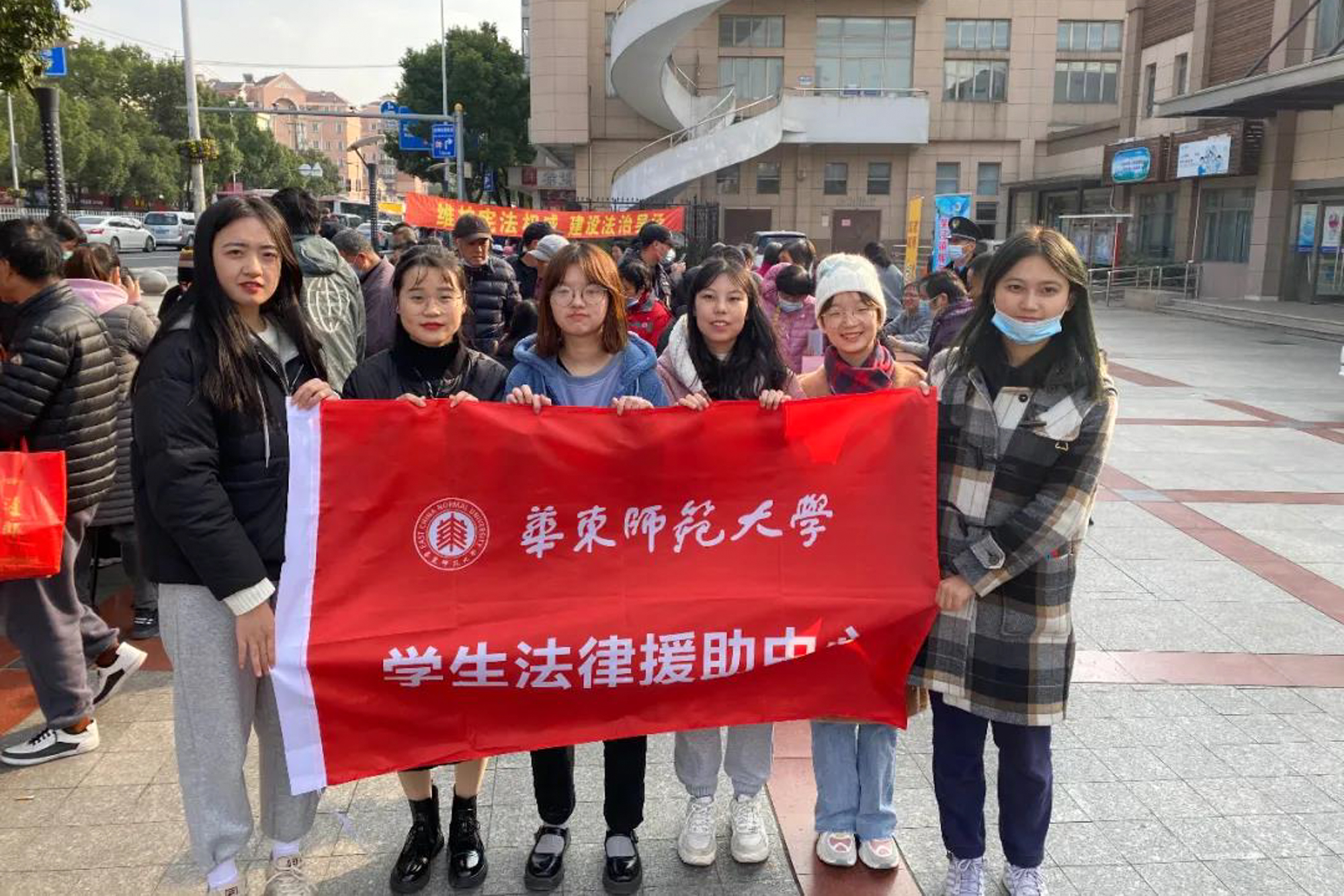 12月4日下午,法学院学生志愿者继续参加“宪法红在闵行”闵行区宪法宣传周活动,与吴泾镇司法所积极联络合作,在吴泾文化广场开展法治宣传主题广场活动,通过向市民赠送普法宣传册、接受众多市民的现场咨询等方式,为市民们答疑解惑,普及法律知识。