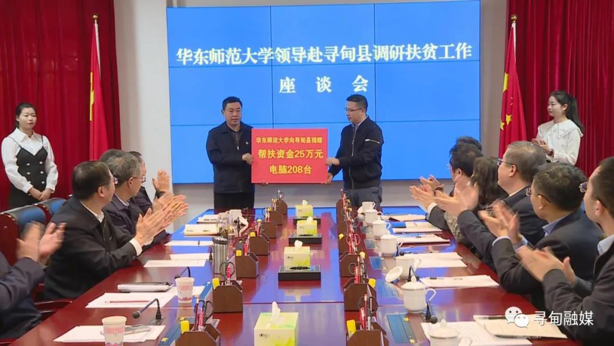 此外,在座谈会上,华东师大向寻甸县捐赠教育帮扶资金和物资,寻甸县常务副县长李东华代表县委、县政府接受捐赠。