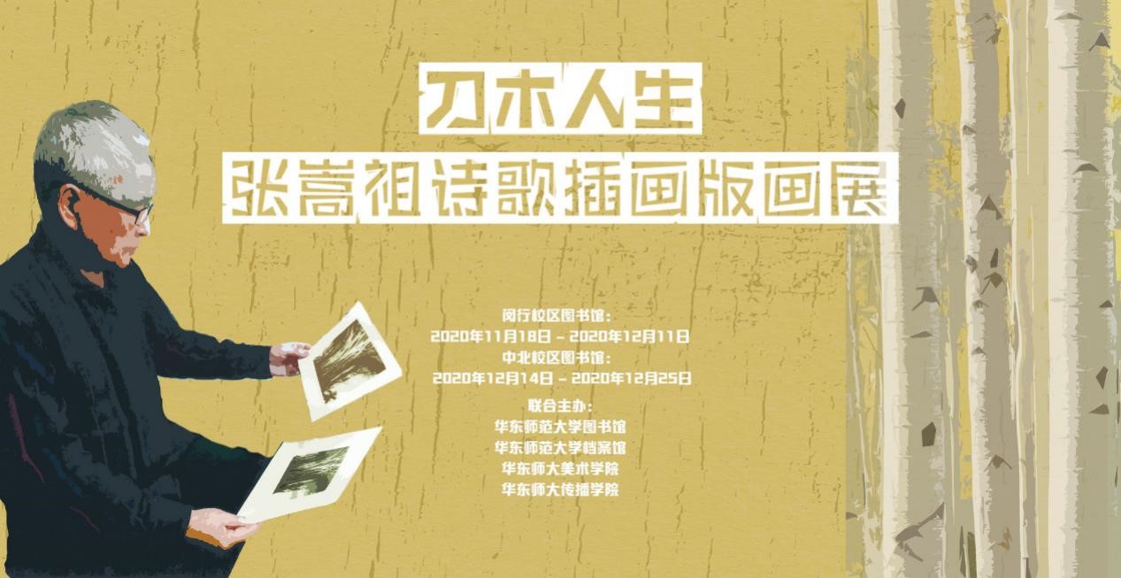 11月18日,展示著名版画家张嵩祖先生的艺术总结之作“刀木人生:张嵩祖诗歌插画版画展”在闵行校区图书馆二楼展厅正式开幕。