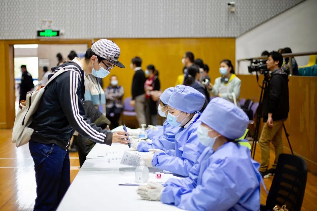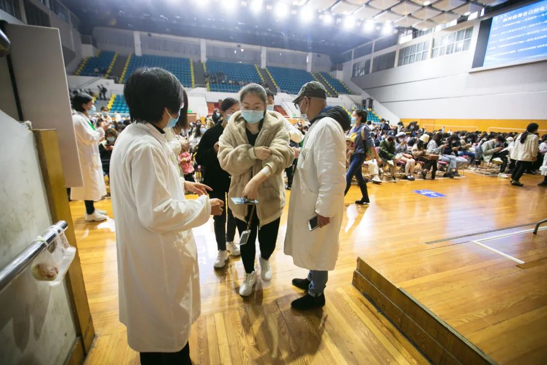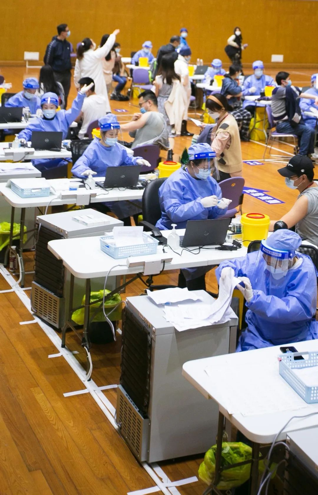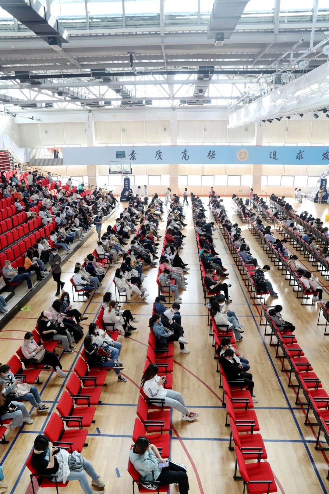 3月27-28日,约18000名学生及教职员工分校区、按时段在两校区体育馆接种了新冠疫苗分别由闵行区、普陀区医护人员组成的临时接种组“上门接种”。
