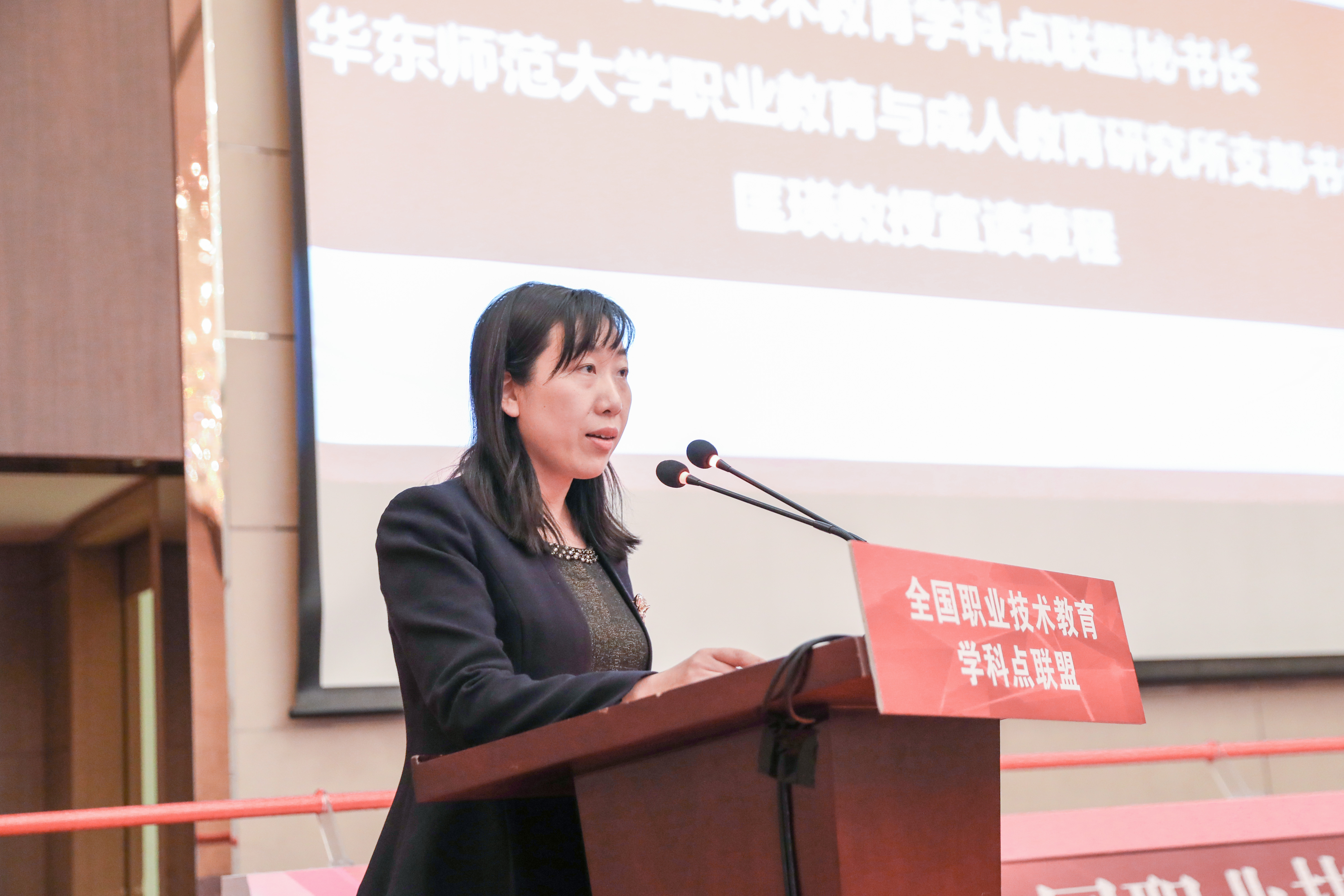 联盟秘书长、华东师大职业教育与成人教育研究所支部书记匡瑛教授宣读联盟章程