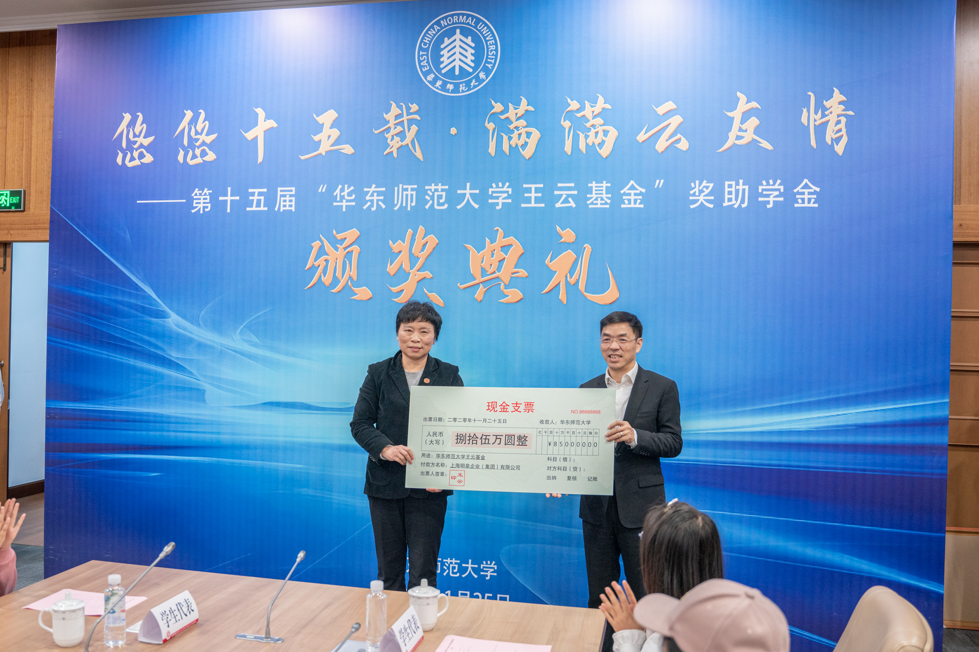 王云先生代表上海明泉企业(集团)有限公司再向华东师大捐赠85万元,持续助力华东师大学生资助工作。