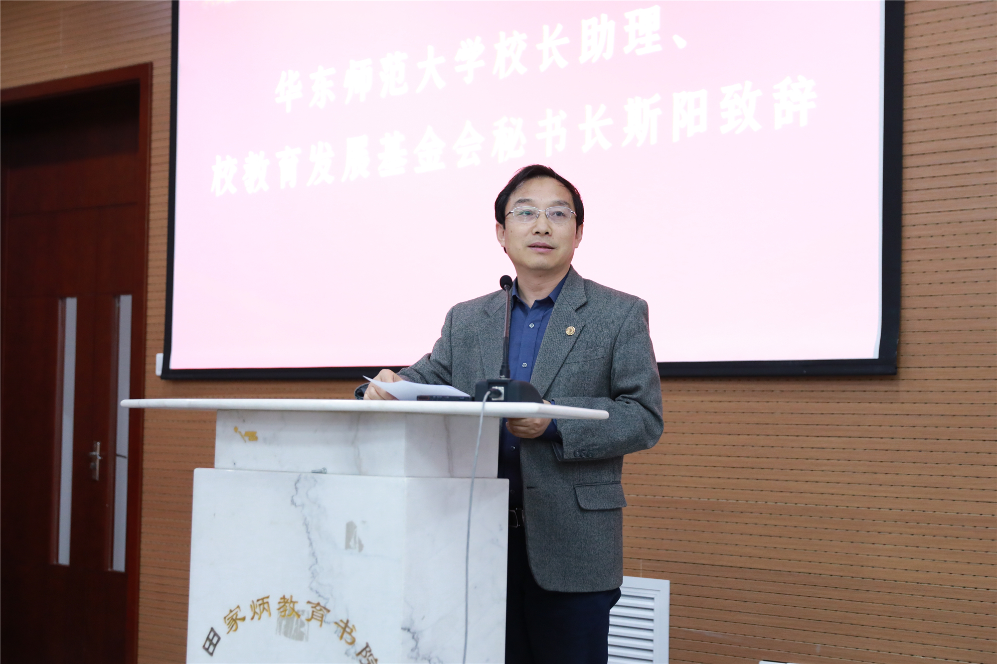 华东师大校长助理、校教育发展基金会秘书长兼校庆筹备办公室主任斯阳致辞