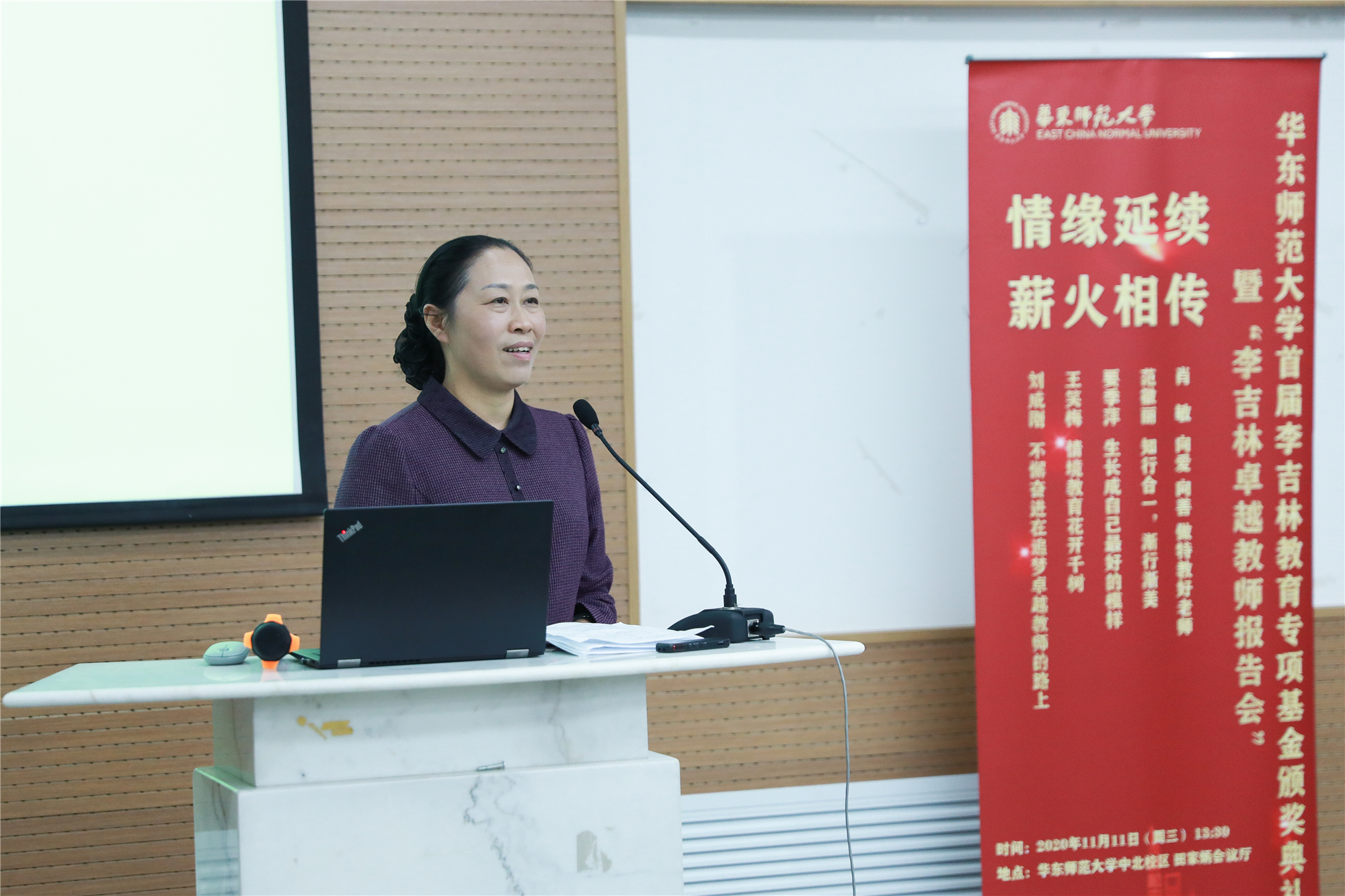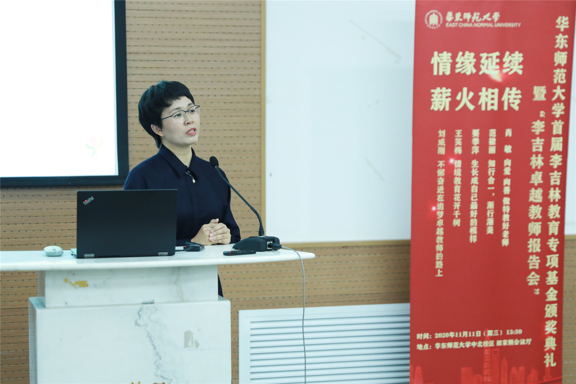 11月11日下午,来自全国不同地区的10位入选“首届李吉林卓越教师支持计划”的教师、10位获得“首届李吉林奖学金”的华东师大学生,李吉林老师家人、全国优秀教师代表和华东师大教师教育学院全体在校研究生参加了万象城awcsport官网首届李吉林教育专项基金颁奖典礼暨“李吉林卓越教师报告会”活动。