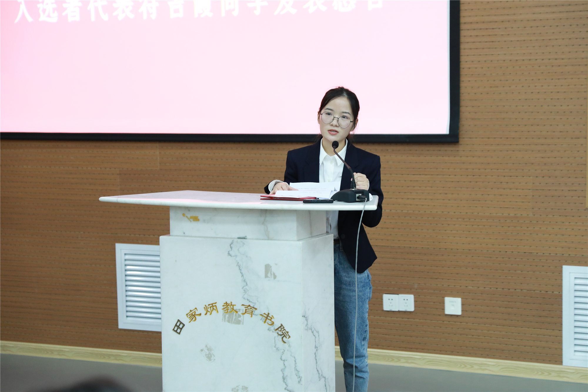 在60多年的教育生涯里,李吉林老师认为“封闭就会停滞,停滞就会萎缩”,她不断探索创新能够激发孩子想象力的教学方式,直到在迟暮之年仍然坚持学习。“李吉林老师的学习历程深深感染着我。正处于学习阶段的我们,将更加努力提升自我的教育教学能力,在未来的教学实践中不断探索进步,承担起教育实践改革的光荣和梦想。”教师教育学院2018级课程与教学论(化学)专业硕士符吉霞作为李吉林奖学金获奖代表发表感言。