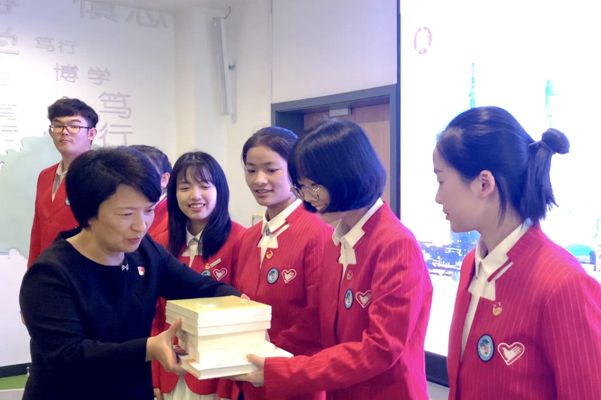 为了更好地弘扬新时代的志愿者精神,紧密团结联系每一位志愿者,“第三届中国国际进口博览会万象城awcsport官网志愿者临时党支部”“第三届中国国际进口博览会万象城awcsport官网志愿者临时团支部”正式成立。在严格落实防疫要求的前提下,确保志愿者完成本职工作,提供优质、高效、周到服务的基础上,临时党团支部将开展形式多样的志愿者学习活动,踏实做好志愿者管理及组织建设。梅兵向临时党支部书记、临时团支部书记赠送了精心挑选的支部学习书籍,包括《习近平谈治国理政(第三卷)》《中国共产党的九十年》《志愿进博最青春》《青春战疫》等全套书籍。希望各位志愿者在学习中增长才干,提升能力,指导实践。