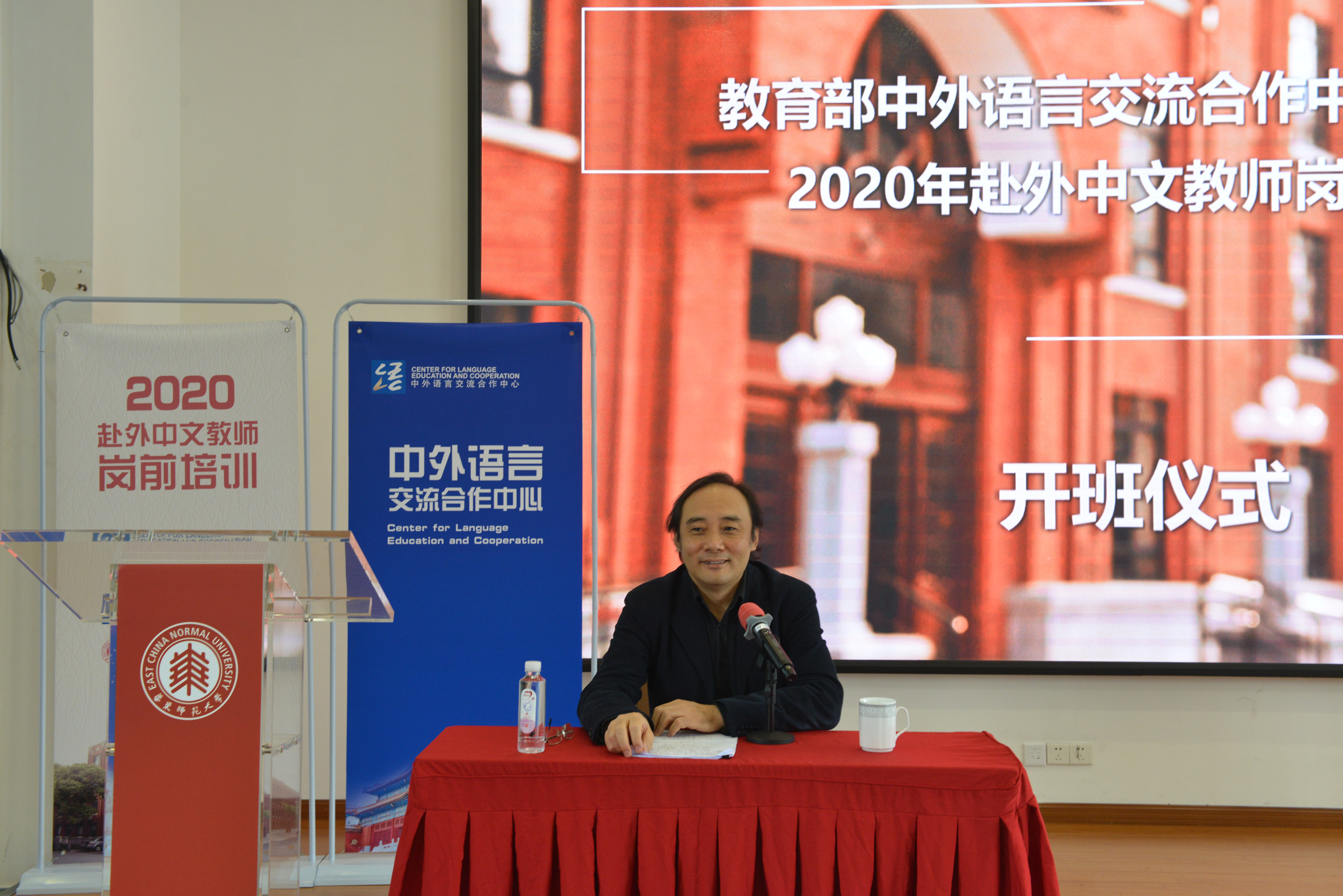 赵国成在致辞中对各位老师表示了热烈的欢迎和崇高的敬意!他感谢各位老师加入中文教师的队伍,去国外完成伟大的使命。他感谢华东师大一直以来对语合中心的大力支持,他说,多年来华东师大同语合中心密切合作,并且承担了大量培训任务,成为非常重要的、发挥作用最大的培训基地。他说,因特殊时期,这次培训采取线上、线下相结合的方式,线下的培训虽然只有短短的三天,希望大家能够在课程、团队建设、能力提高等方面收获满满!