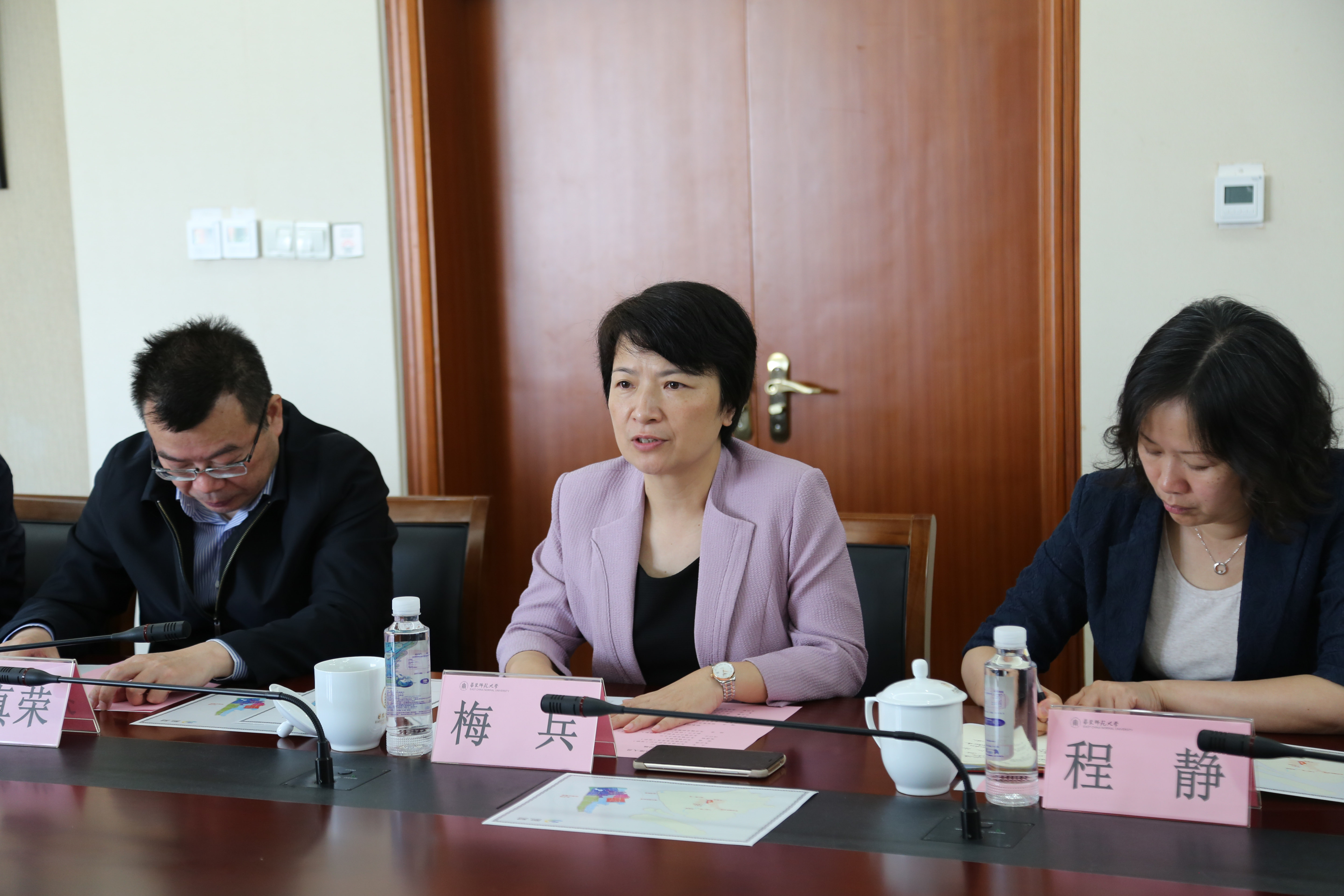 杨其景介绍了吴泾镇以党建引领特色小镇建设的发展经验。她表示,吴泾镇的发展成就离不开华东师大的支持,“十四五”期间,将进一步深化与华东师大的合作,为学校发展提供更周全的配套服务。