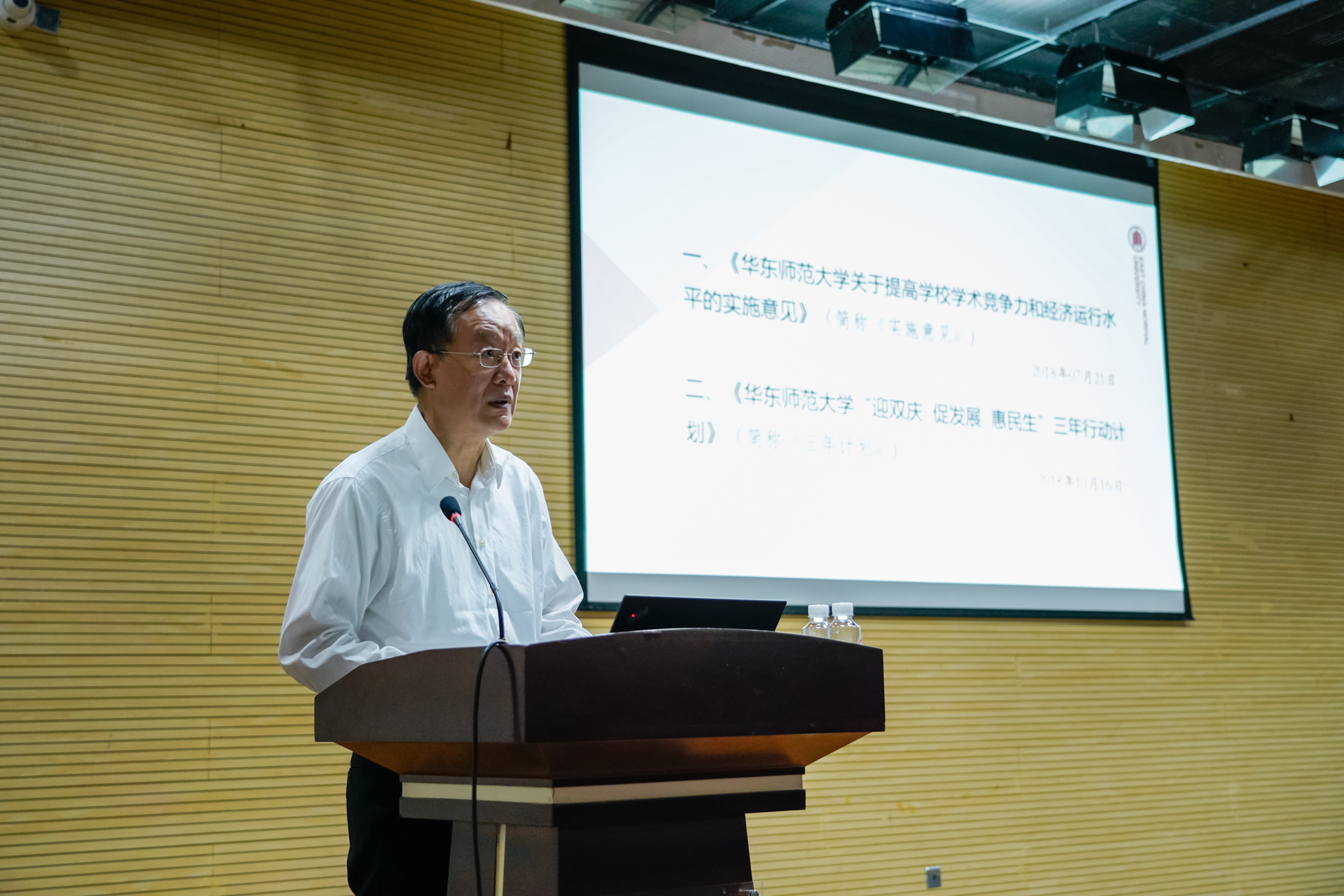 10月16日是华东师大建校69周年校庆日,学校举办70周年校庆倒计时一周年活动,将工作重点落在抓实事和促成效上。10月14日下午,华东师大召开全校教师干部大会,以师生共同“检阅”学校工作实绩的方式拉开了70周年校庆年序幕。