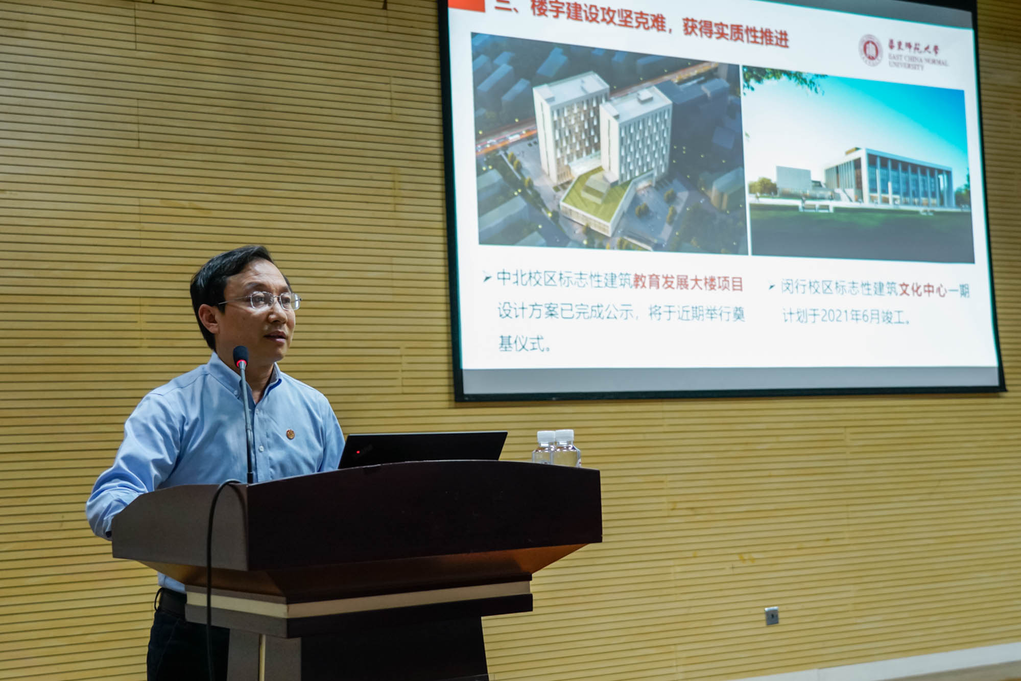 校园形象提升基金项目推出十大工程,在建设文化校园、智慧校园、生态校园、效率校园、安全校园等方面取得了阶段性成果。校园道路标识系统建设、融媒体中心建设、校史馆建设、智慧校园建设等文化项目多点开花,形成校庆氛围;河畔治理亮点频出,樱花步道、屋顶花园、丽娃河书吧等成为网红打卡地;楼宇建设攻坚克难,中北校区教育发展大楼和闵行校区文化中心等都获得实质性推进;枣阳路校门重建、双创大楼等修缮工程稳步推进,旧貌换新颜。校长助理斯阳汇报了校园形象提升工程的工作进展。
