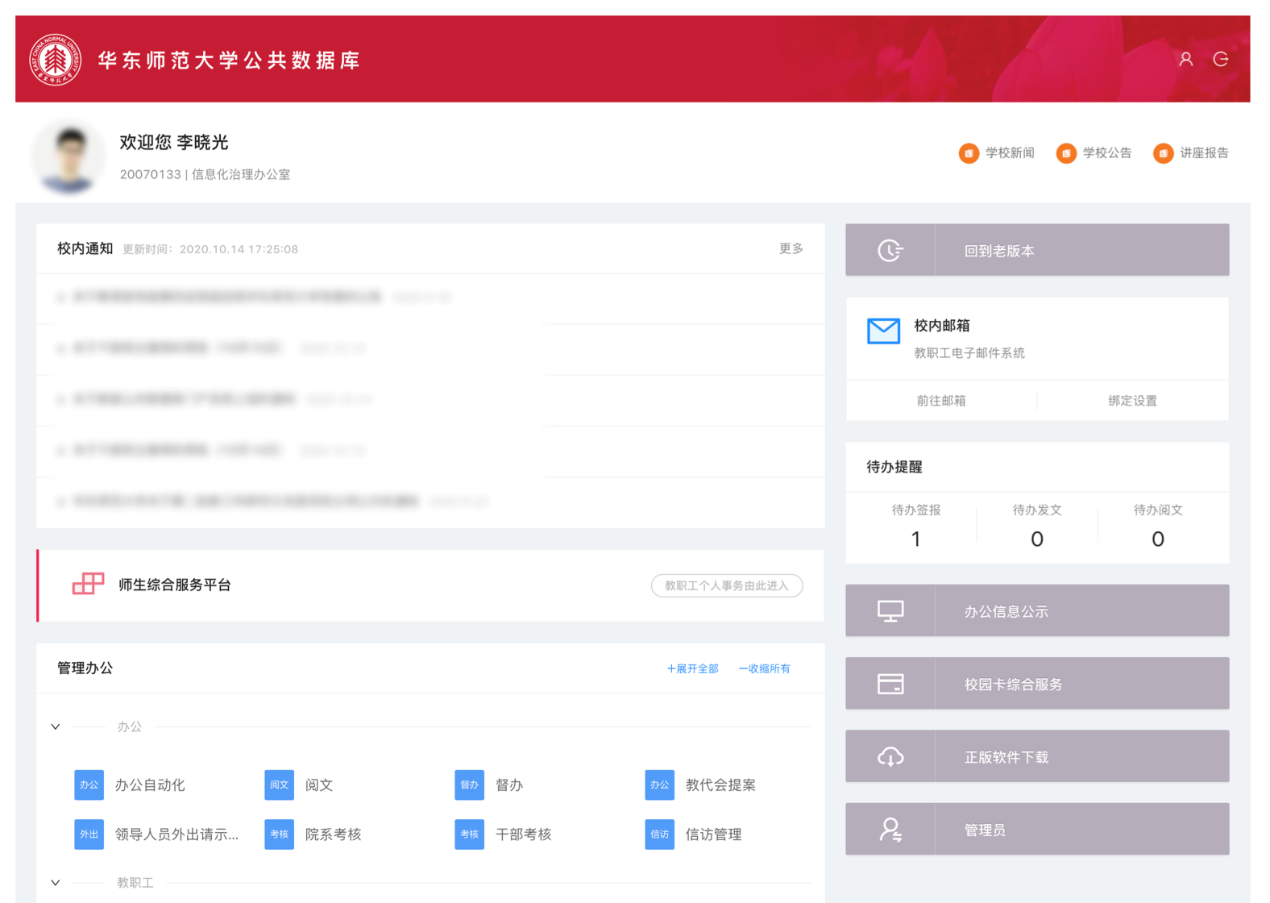 一是更加便捷。新版门户根据师生用户的使用频次和习惯,对校级主要应用系统进一步梳理再整合,围绕“一网通管”和“一网通办”,针对教职工、研究生、本科生等不同用户角色,优化界面设计布局,方便用户访问获取信息。