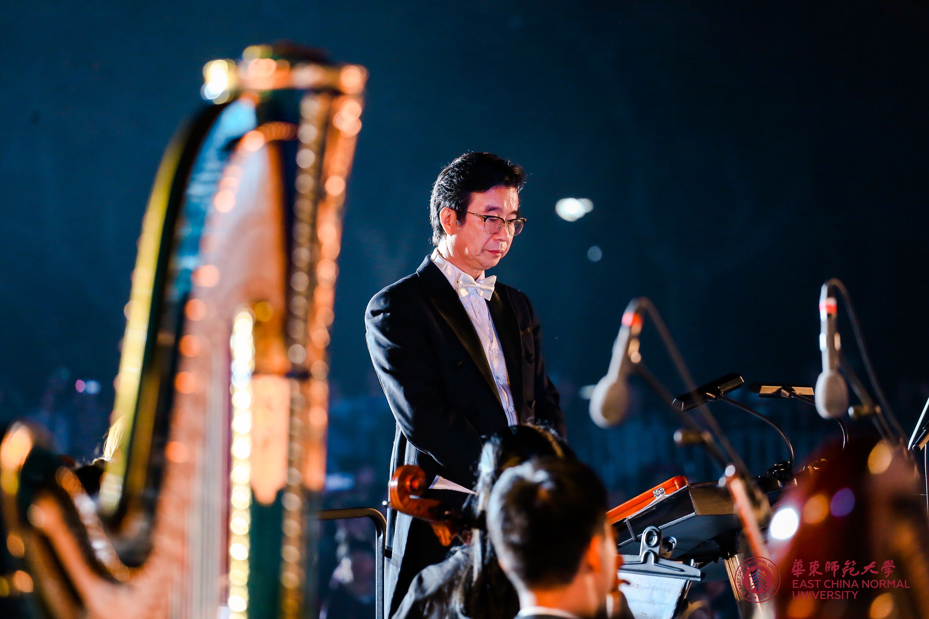 《丽娃河畅想曲》由常林教授指挥,华东师大交响乐团演奏,将丽娃河的钟灵毓秀、底蕴深厚和吾辈师大人的奋发昂扬、朝气蓬勃演绎得淋漓尽致。交响乐《追寻》根据电影《建国大业》主题曲改编而成,跌宕起伏的旋律追溯着师大人为学校发展继往开来、发奋图强的历史,表现了师生担负新使命、开拓新气象,为学校“双一流”建设大业添砖加瓦的豪情壮志。