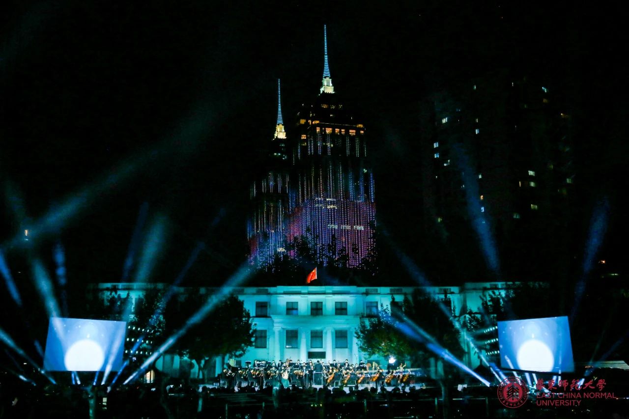 以校庆促凝聚、以校庆促发展、以校庆促育人。当晚,中山北路校区群贤堂前草坪上,百余名师生同台演绎,千余位观众露天共赏,奏响“建教育强国、以教育强国”的时代强音。