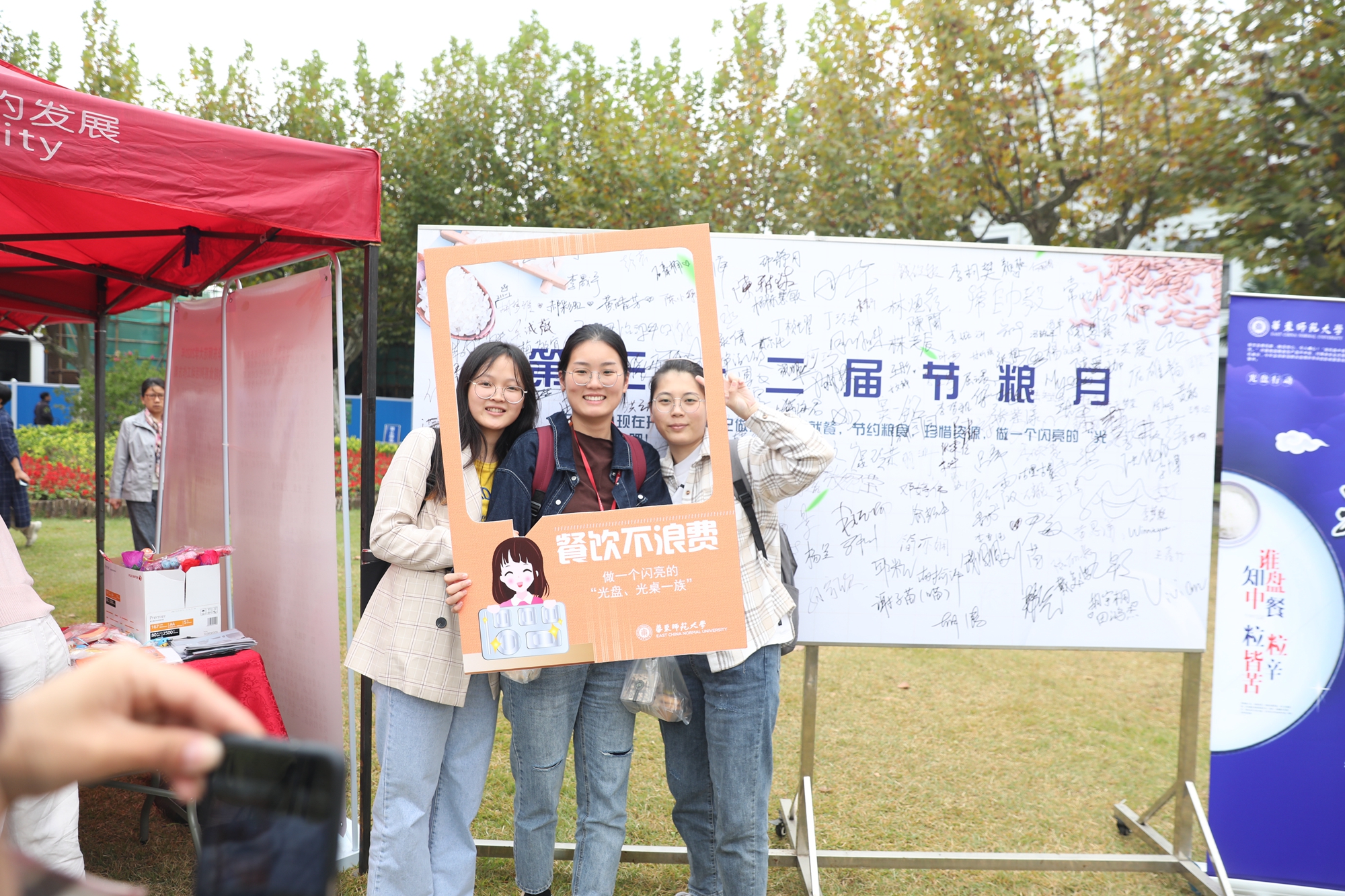 截止2020年,华东师大共连续举办了32届“节粮月”活动,大力弘扬“俭以养德、惜粮节粮”的粮食文化精神,杜绝“舌尖上的浪费”。结合新学期开学,后勤保障部向全校师生发出节约粮食倡议书、后勤党工委发出“节约粮食、拒绝浪费”倡议书,进一步深化学校精神文明和校园文化建设,推动形成节约粮食的良好风尚。从2017年开始至今,各学生食堂开展了线上与线下配合的“光盘、光桌”宣传教育活动,对光盘的就餐师生赠送水果或餐巾纸、口香糖等小礼品,通过给予小小奖励,助力师生养成文明、良好的就餐习惯。今年秋季学期开学后,以师生的实际需求为导向,学校食堂改变以往的固定售卖模式,提供“菜肴可半份,饭量可半两”,引导师生们按需购买饭菜,有效减少浪费,养成勤俭节约的好习惯。与此同时,各食堂把好原材料管理关,按照后勤保障部质量安全、应急响应网格化、标准化管理要求,做好原材料存储、加工等环节工作,从源头上入手,减少原材料囤积,避免浪费。学校将抓住关键环节,建立长效机制,推动节约粮食工作长期持续有效开展。