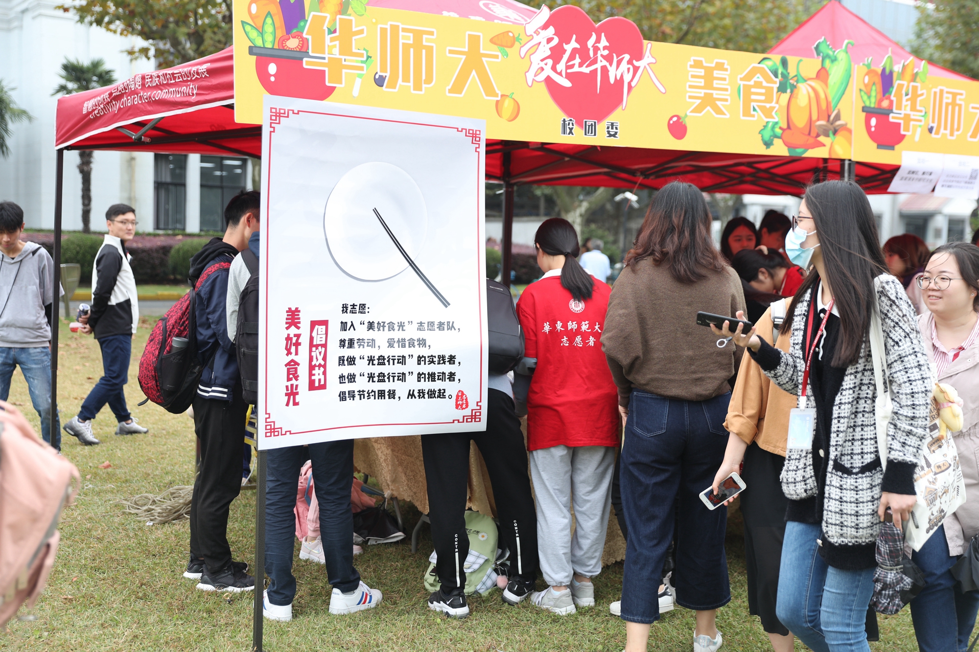 据悉,本次活动是华东师大积极响应教育部“美好‘食’光”校园系列活动的具体行动,旨在通过师生参与节粮月活动,向师生呼吁节约粮食的重要性,进一步弘扬中华民族勤俭节约、爱粮节粮的传统美德;通过系列扶贫宣传展示活动,弘扬中华民族守望相助、扶贫济困的优良传统;通过美食展销,弘扬师大美食文化,各餐饮服务单位进一步树立“全心全意为师生服务”的理念,提升食堂服务质量和管理水平,让广大师生了解后勤、理解后勤、支持后勤。活动现场,校团委还组织开展了“美好‘食’光”校园系列活动招募学生志愿者活动。