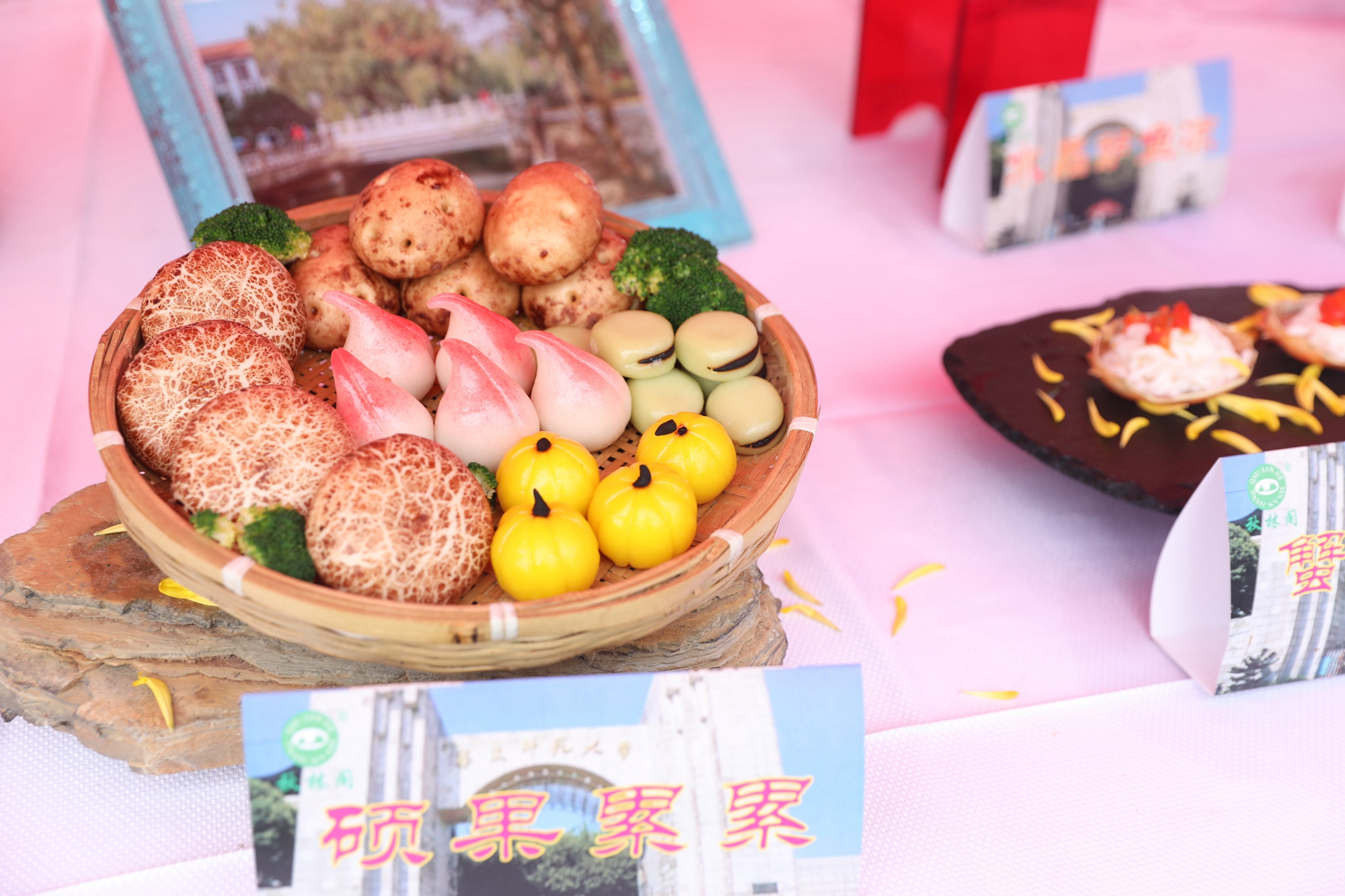“人未到,食先备”,上午10点半,各部门已早早做好了准备,在工作台上摆好了琳琅满目的美食,有饱满料足的中式糕点、有色泽诱人的西式点心、有色香味俱佳的营养菜肴、有新鲜实惠的当季蔬果。师生们不仅可以吃到膳食服务中心(1)的比利时巧克力、虎皮卷、巧克力泡芙、苏北肉圆,还可以吃到膳食服务中心(2)的开胃小木耳、广式叉烧、榴莲酥;不仅可以品尝到秋林阁的蝴蝶酥、椒盐酥饼、酒酿糕、去骨凤爪,还可以品尝到中快餐饮的绿豆糕、拿破仑、肉松酥条、卤水鸭翅;不仅可以试试象郡餐饮的水果捞新品,还能试试清真食堂的椒麻鸡和肉夹馍。