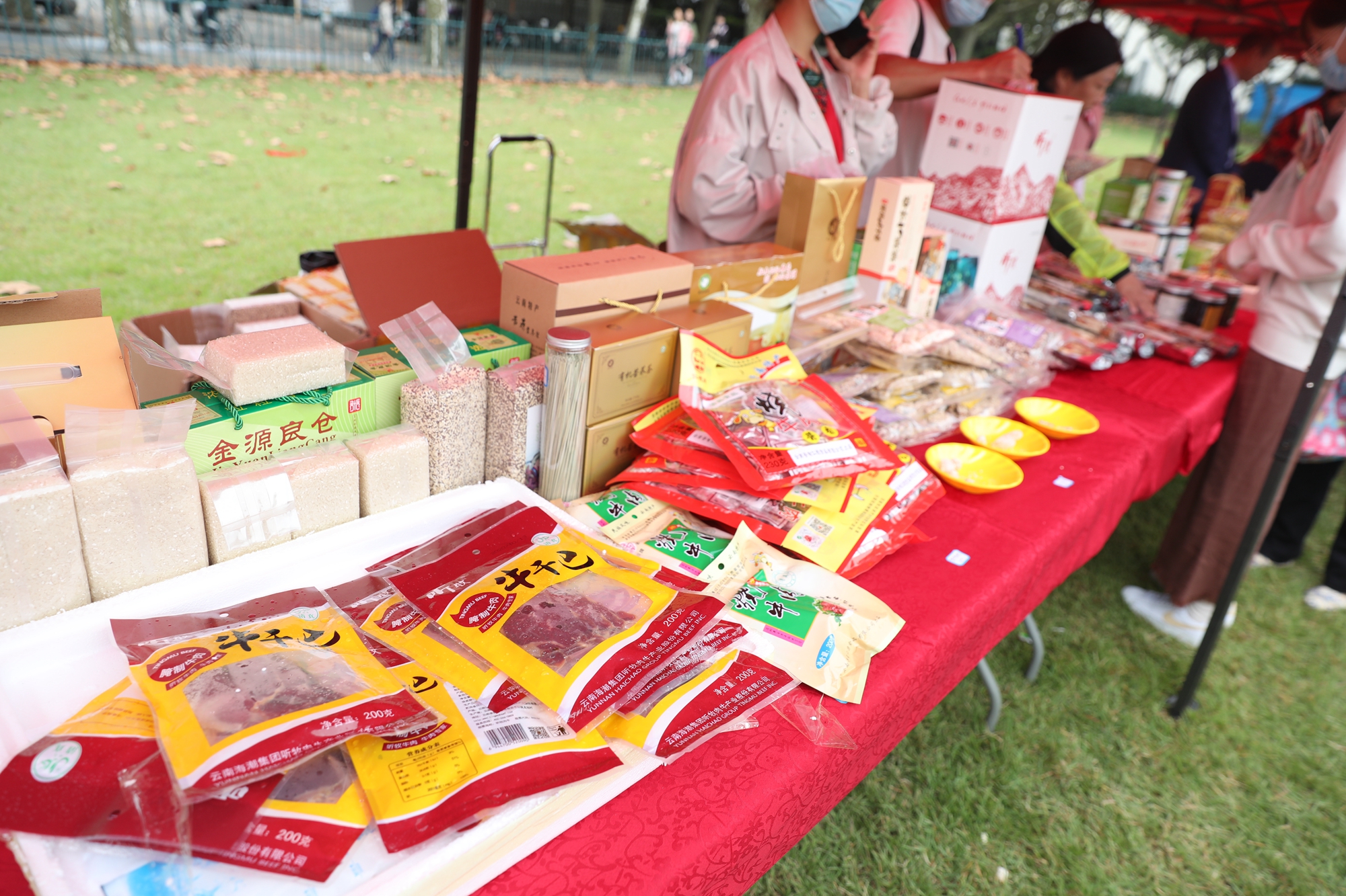 云南寻甸、青海果洛、新疆喀什、贵州遵义等地的扶贫农副产品在现场展销