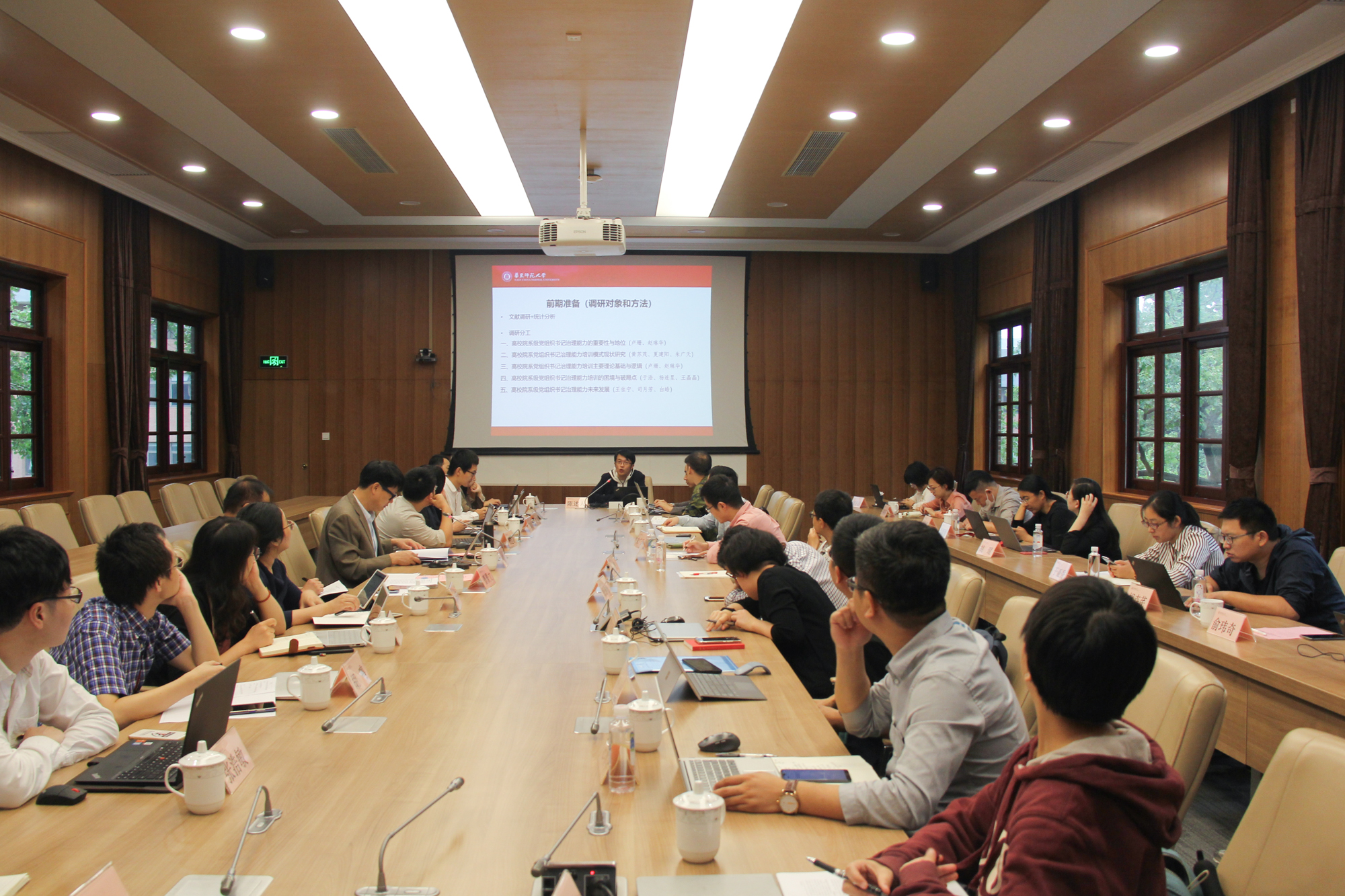 9月23日上午,第17期青年骨干理论培训班调研课题中期指导交流会暨习近平总书记教师节寄语精神专题学习会在中山北路校区办公楼小礼堂举行。马克思主义学院曹景文教授应邀与会作课题点评指导,会议由校党校副校长兼高级研修学院副院长张俊华主持。