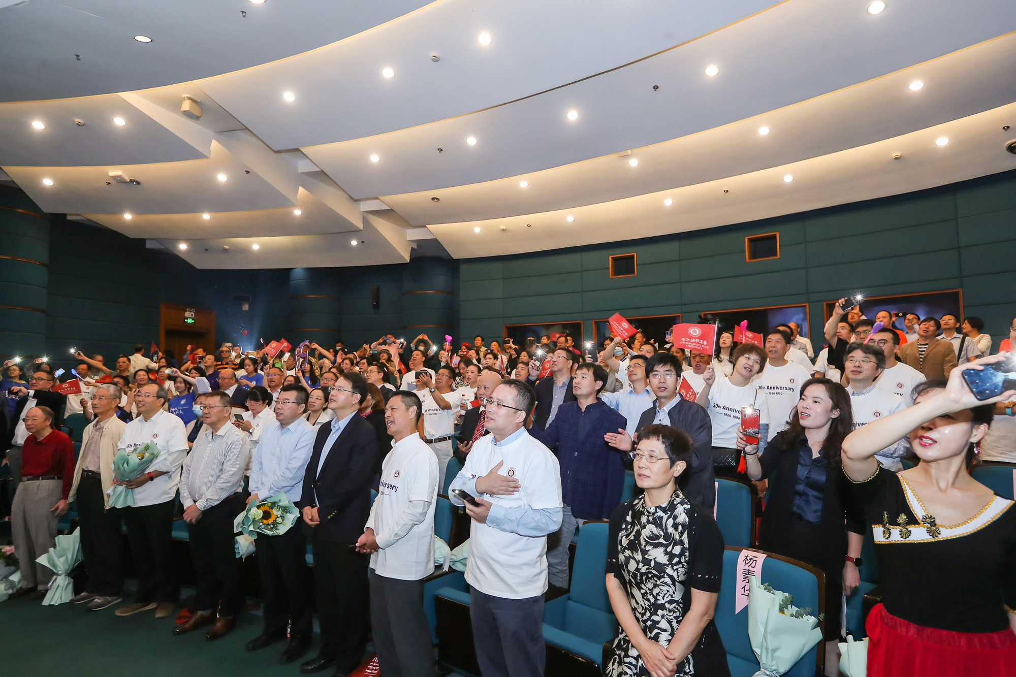 活动最后,在音乐学院石春轩子老师和艺术团师生们的带领下,全场校友一起合唱《明天会更好》,挥动的校旗和点亮的手机闪光灯将主题班会的气氛推向高潮。